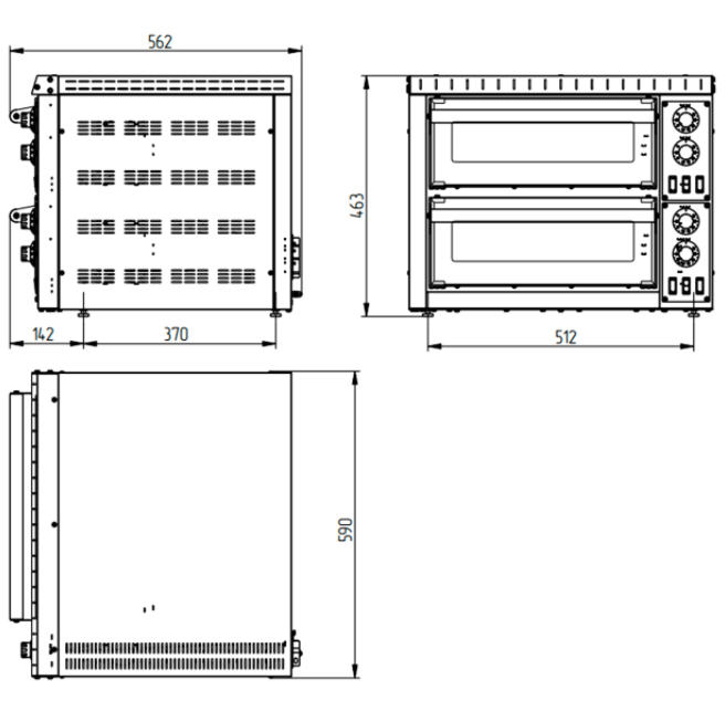 | Вес (без упаковки)60 кг | Вместимость (пицц)2 | Внутренние размеры камеры360х400х80 мм |