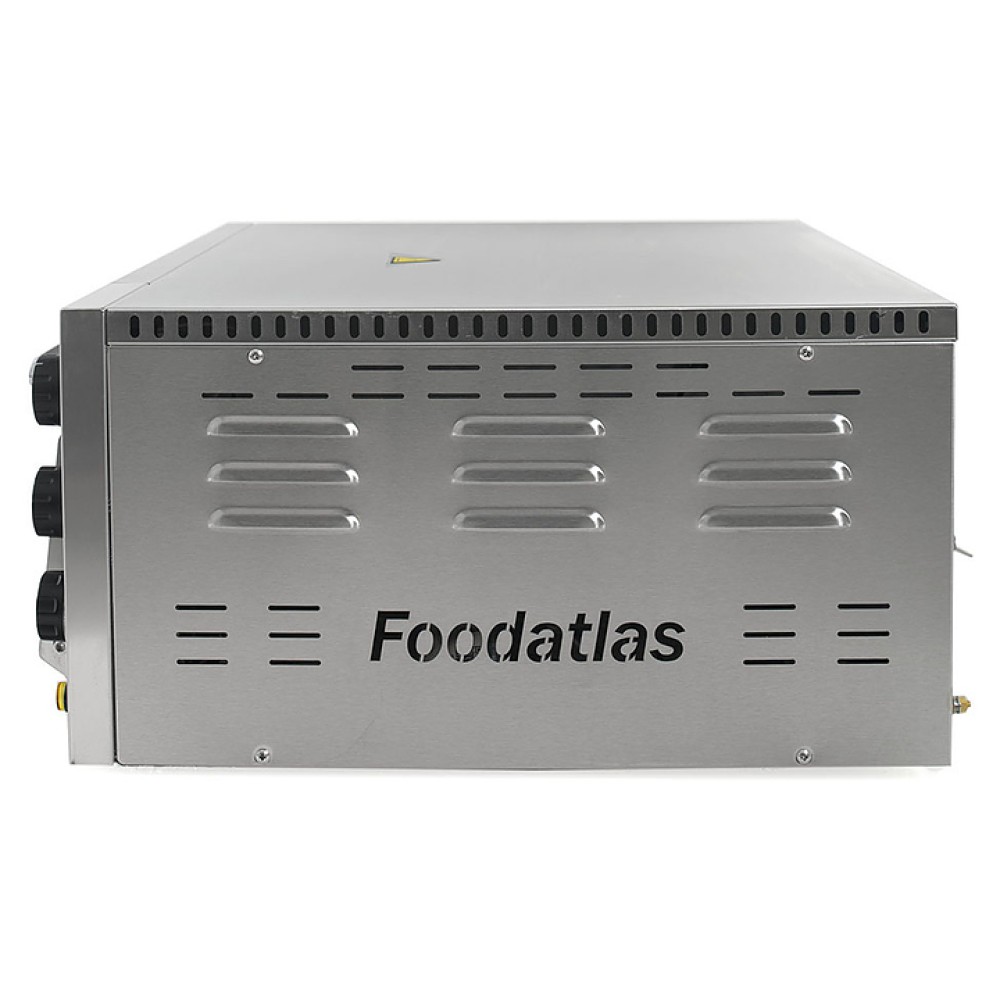 Печь для пиццы Foodatlas HEP-1ST используется на предприятиях общественного питания и торговли для выпечки пиццы и хлеба. Модель оснащена механической панелью управления, 2-мя электрическими ТЭНами, расположенными вверху и внизу камеры, регулятором температуры, индикатором нагрева, смотровым стеклянным окном и каменным подом. Внутренняя поверхность и направляющие выполнены из алюминия, внешняя - из нержавеющей стали S/S 201, ручка - из ненагревающегося при работе бакелита.