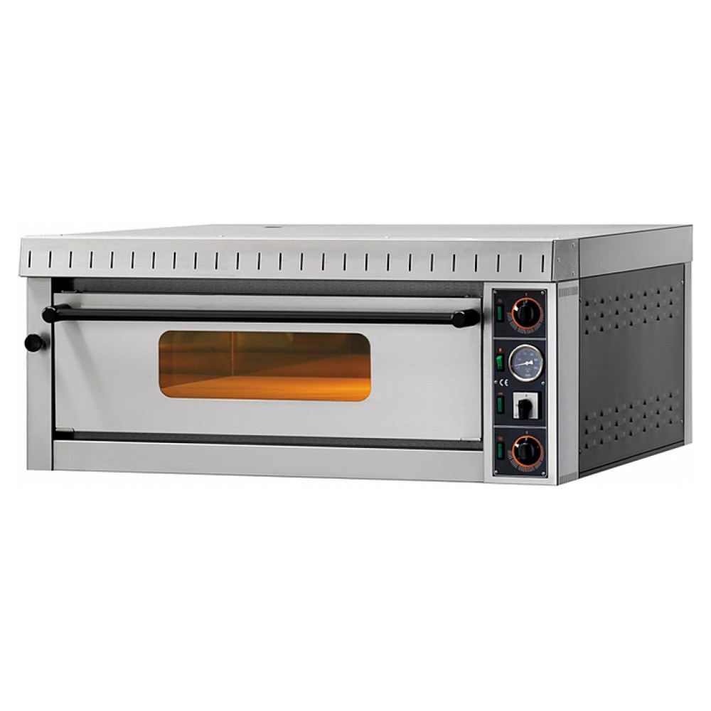 Печь для пиццы GAM MD 6 используется на предприятиях общественного питания, в кондитерских, пекарнях, в супер- и гипермаркетах с собственной кухней для выпечки пиццы и хлебобулочных изделий, требующих высокой температуры приготовления. Корпус и камера выполнены из нержавеющей стали, дверца - из керамического стекла, под - из огнеупорного камня.