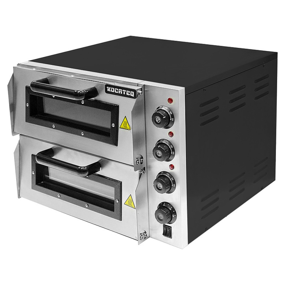 Подовая печь для пиццы Kocateq EPC02P серии EP COMPACT используется на предприятиях общественного питания и торговли, в пекарнях и кондитерских для выпечки пиццы, горячих сэндвичей и хлебобулочных изделий. Модель оснащена механической панелью управления и 2 термостатами для регулировки температуры, раздельными для каждой камеры. Корпус выполнен из стали с термостойким полимерно-порошковым покрытием, камера - из специальной теплопроводящей стали, профессиональный под - из керамики.
