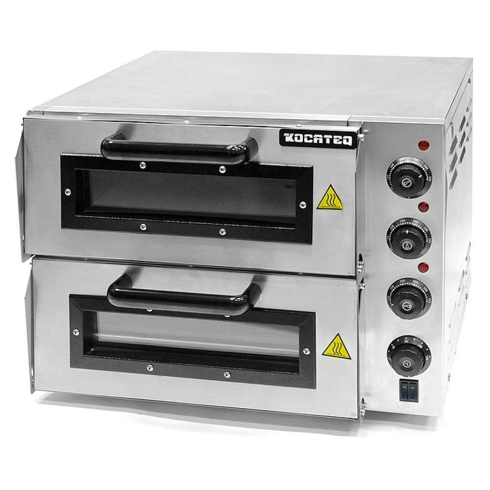 Подовая печь для пиццы Kocateq EPC02S серии EP COMPACT используется на предприятиях общественного питания и торговли, в пекарнях и кондитерских для выпечки пиццы, горячих сэндвичей и хлебобулочных изделий. Модель оснащена механической панелью управления и 2 термостатами для регулировки температуры, раздельными для каждой камеры. Корпус выполнен из нержавеющей стали, камера - из специальной теплопроводящей стали, профессиональный под - из керамики.