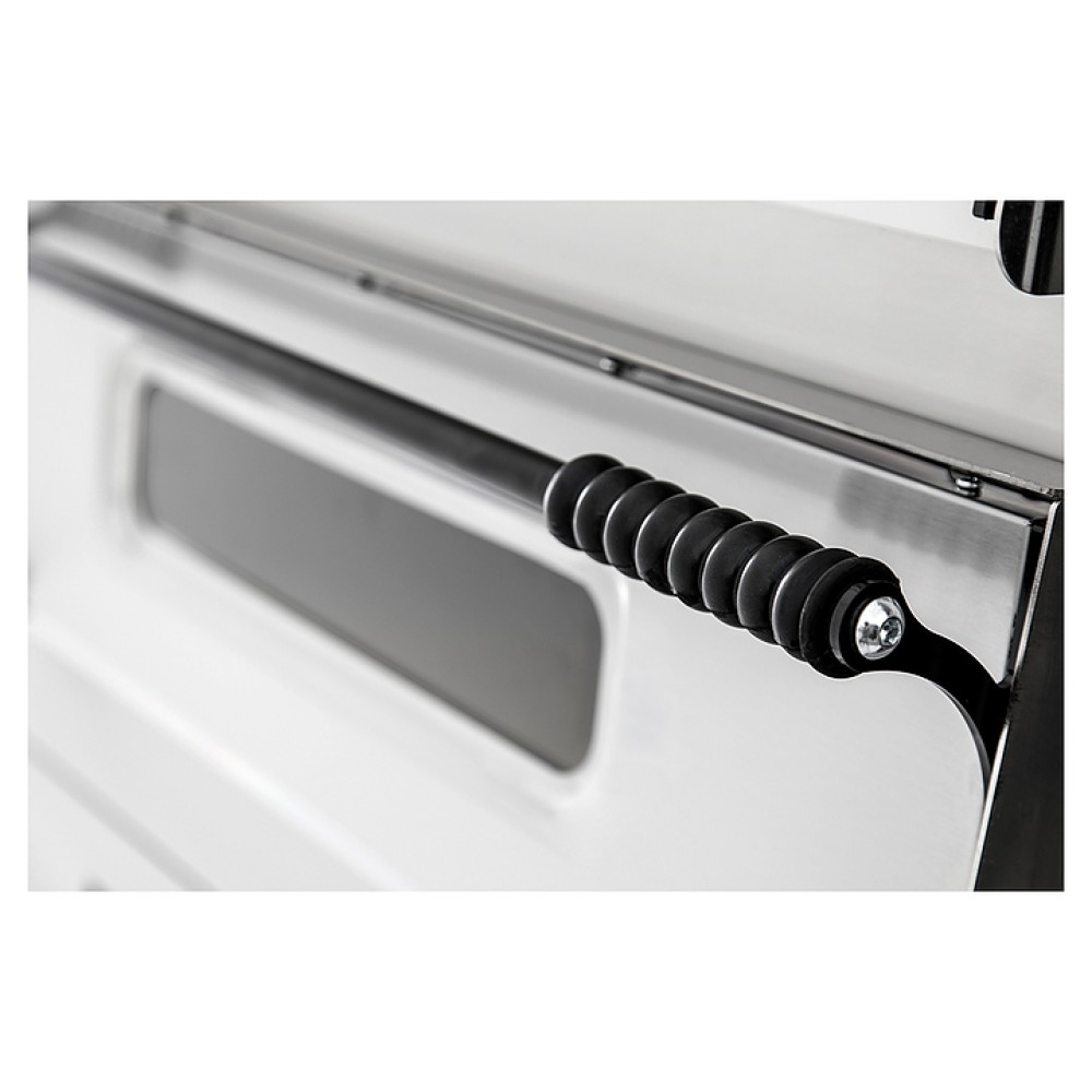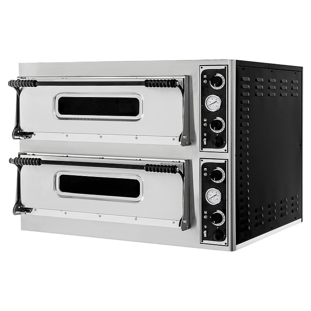 Печь для пиццы Prismafood BASIC 66 используется на предприятиях общественного питания и торговли для выпечки пиццы и других хлебобулочных изделий. Модель оснащена 2 рабочими камерами с откидными дверьми, длинными горизонтальными рукоятками с рельефной поверхностью и электромеханическими панелями управления. Корпус выполнен из листовой стали с антикоррозийным покрытием черного цвета, фронтальная облицовка и двери – из листовой нержавеющей стали, трубчатые нагревательные элементы (ТЭНы) – из стали, поды – из огнеупорного камня, изоляция – из минеральной ваты.