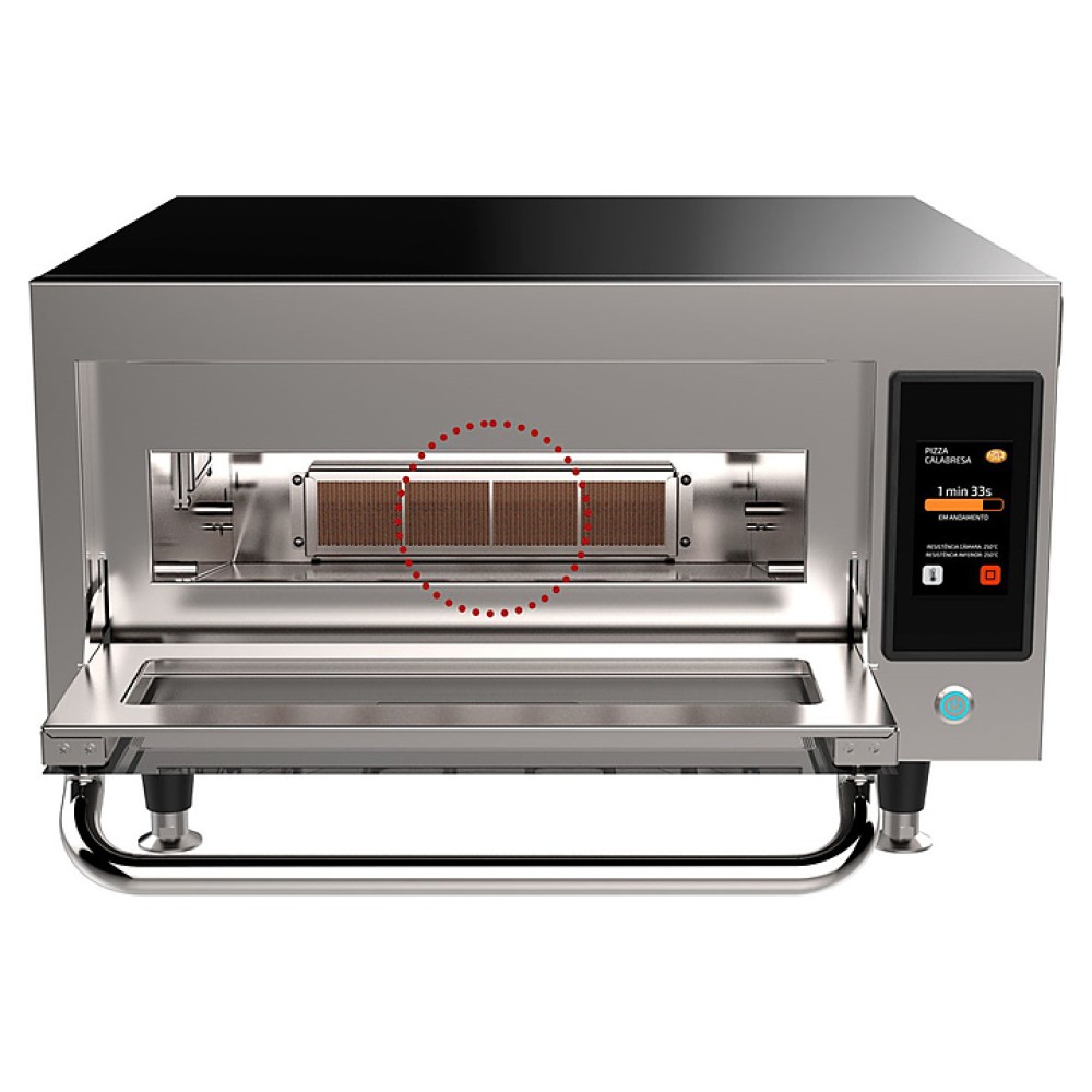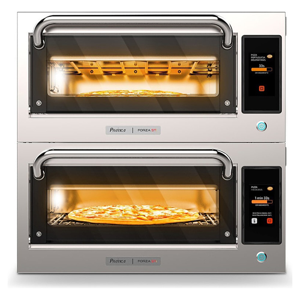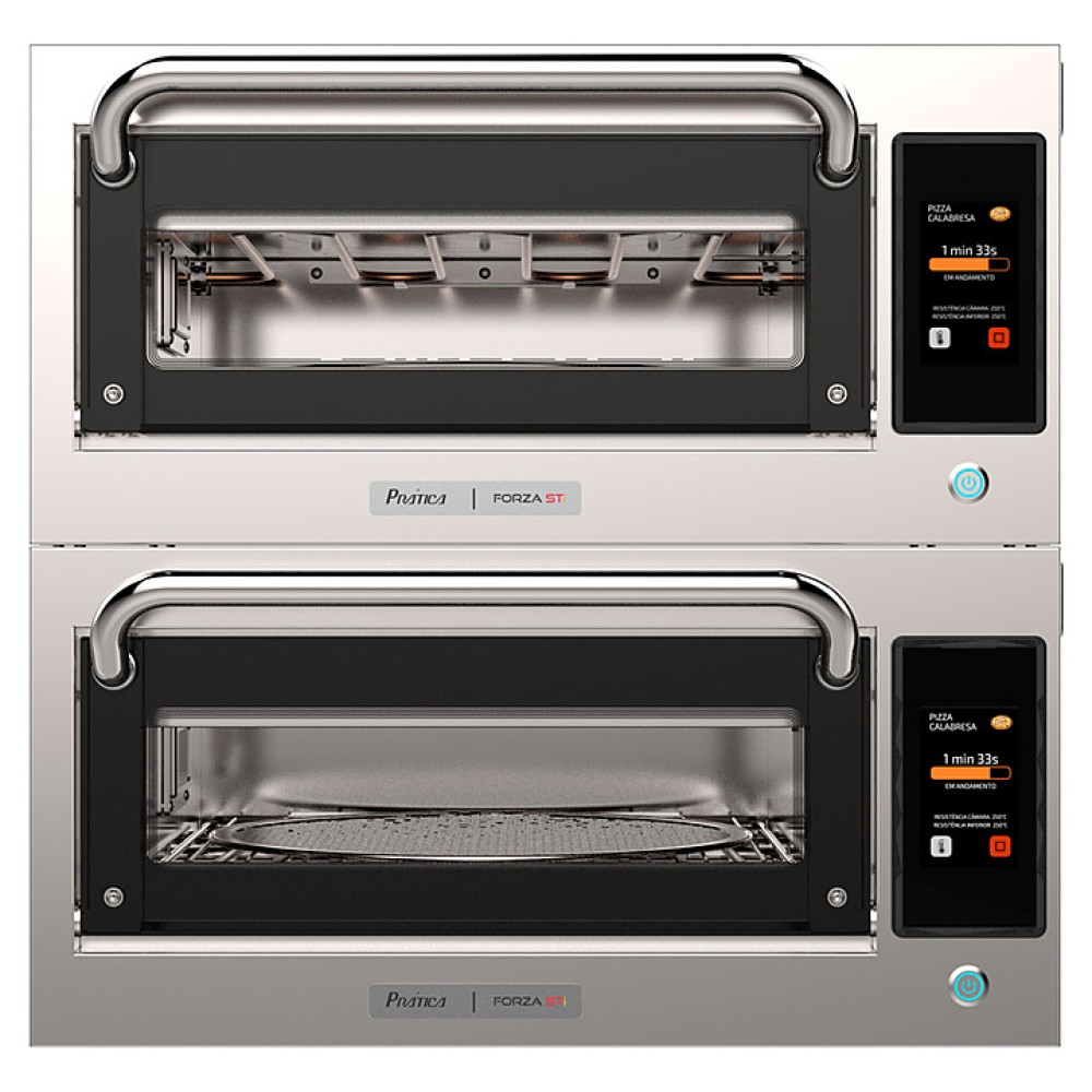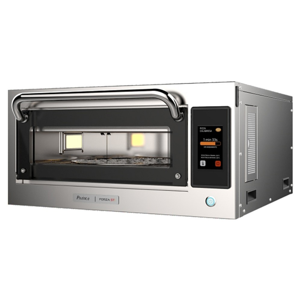 Высокоскоростная печь для пиццы Pratica Forza STi предназначена для выпечки пиццы и хлебобулочных изделий, требующих высокой температуры приготовления, на предприятиях общественного питания и торговли. Модель оснащена цветной сенсорной панелью управления с интуитивно понятным программным обеспечением. Корпус выполнен из нержавеющей стали AISI 430, внутренняя камера - из нержавеющей стали AISI 304.