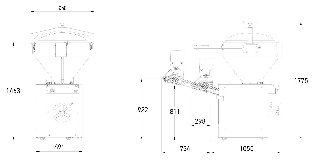| Вес (без упаковки)500 кг | Вместимость бункера160 кг | Масса тестовой заготовкиот 80 до 400 гр |