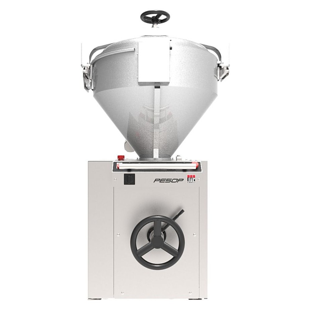 Объемный делитель под атмосферным давлением Jac PE50P 74 используется на предприятиях общественного питания и торговли для распределения всех видов теста. Модель оснащена автономным посыпателем муки и системой рециркуляции масла оснащенной патронным фильтром и сигнализацией низкого уровня, наполнение снаружи. Бункер изготовлен из тефлона, барабан и корпус - из нержавеющей стали, отводящая лента - из войлока, поршень - из литой стали.