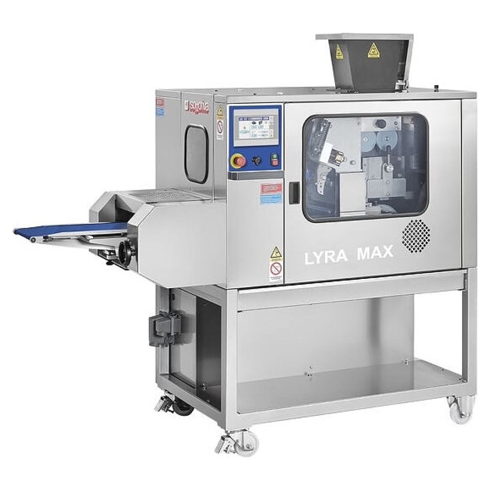 Автоматический тестоделитель-округлитель Sottoriva LYRA MAX используется в пекарнях, пиццериях, кондитерских и на других предприятиях пищевой промышленности, общественного питания и торговли для точно дозированного разделения и последующего скатывания в шарики заготовок из теста. Модель оснащена загрузочным люком с откидной решетчатой крышкой, 2 заменяемыми мерными камерами, камерой округления, ленточным конвейером, цветным сенсорным дисплеем управления и индикации. Корпус выполнен из стали с антикоррозийным покрытием, бункер – нержавеющей стали, прочие соприкасающиеся с продуктом компоненты – из безопасных для пищевой промышленности высокотехнологичных композитных материалов.