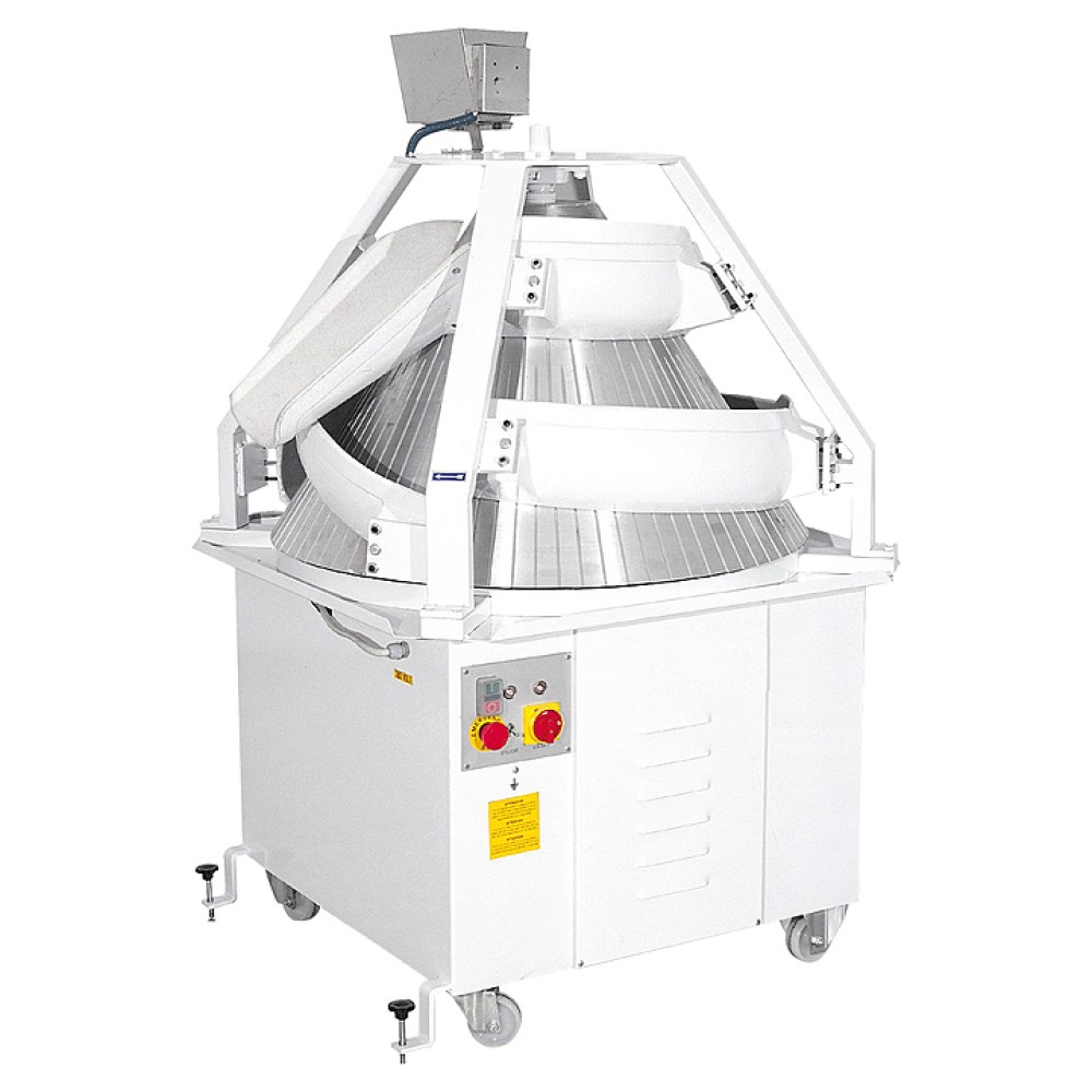 Конический тестоокруглитель Apach Bakery Line F390 используется на предприятиях общественного питания и торговли для формирования тестовых заготовок сферической формы для последующей выпечки различных хлебобулочных изделий. Формовка происходит между вращающимися конусами и двумя вогнутыми спиралями, прикрепленным к конусу. Корпус выполнен из окрашенной стали.