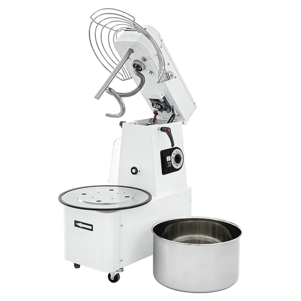 Тестомесильная машина Prismafood IMR 10 используется на предприятиях пищевой промышленности, общественного питания и торговли для замешивания различных видов теста. Модель оснащена съемной поворотной дежой, месильным органом в форме спирали и кнопочной панелью управления. Корпус выполнен из металла с антикоррозийным покрытием белого цвета, дежа, решетка, центральный стержень и месильный орган – из нержавеющей стали.