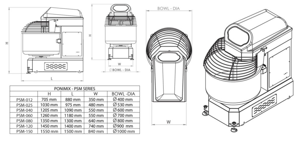 Спиральный тестомес PONIMAK PSM 40 предназначен для замешивания теста различной консистенции на предприятиях общественного питания и торговли. Модель оснащена таймером, электромеханической панелью управления и колесами, облегчающими передвижение.