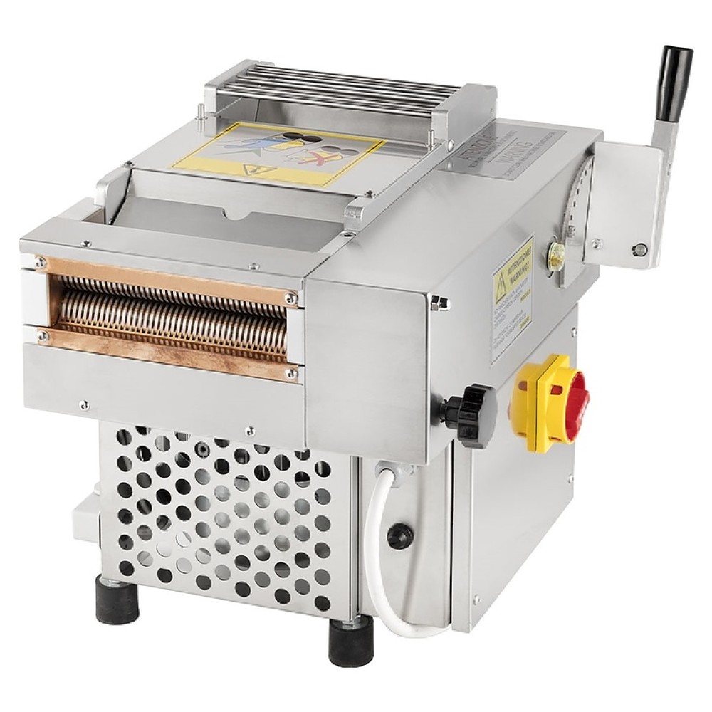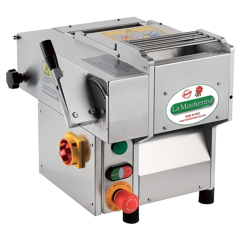 Тестораскатка-лапшерезка La Monferrina NINA 170 используется на предприятиях пищевой промышленности, общественного питания и торговли для замеса и раскатки теста для изготовления равиоли (пельменей), чебуреков, лапши и других продуктов, а также нарезки раскатанного теста на лапшу. Модель оснащена горизонтальным тестомесом и электромеханическим блоком управления. Корпус выполнен из анодированного алюминия, все соприкасающиеся с продуктом компоненты – из нержавеющей стали.