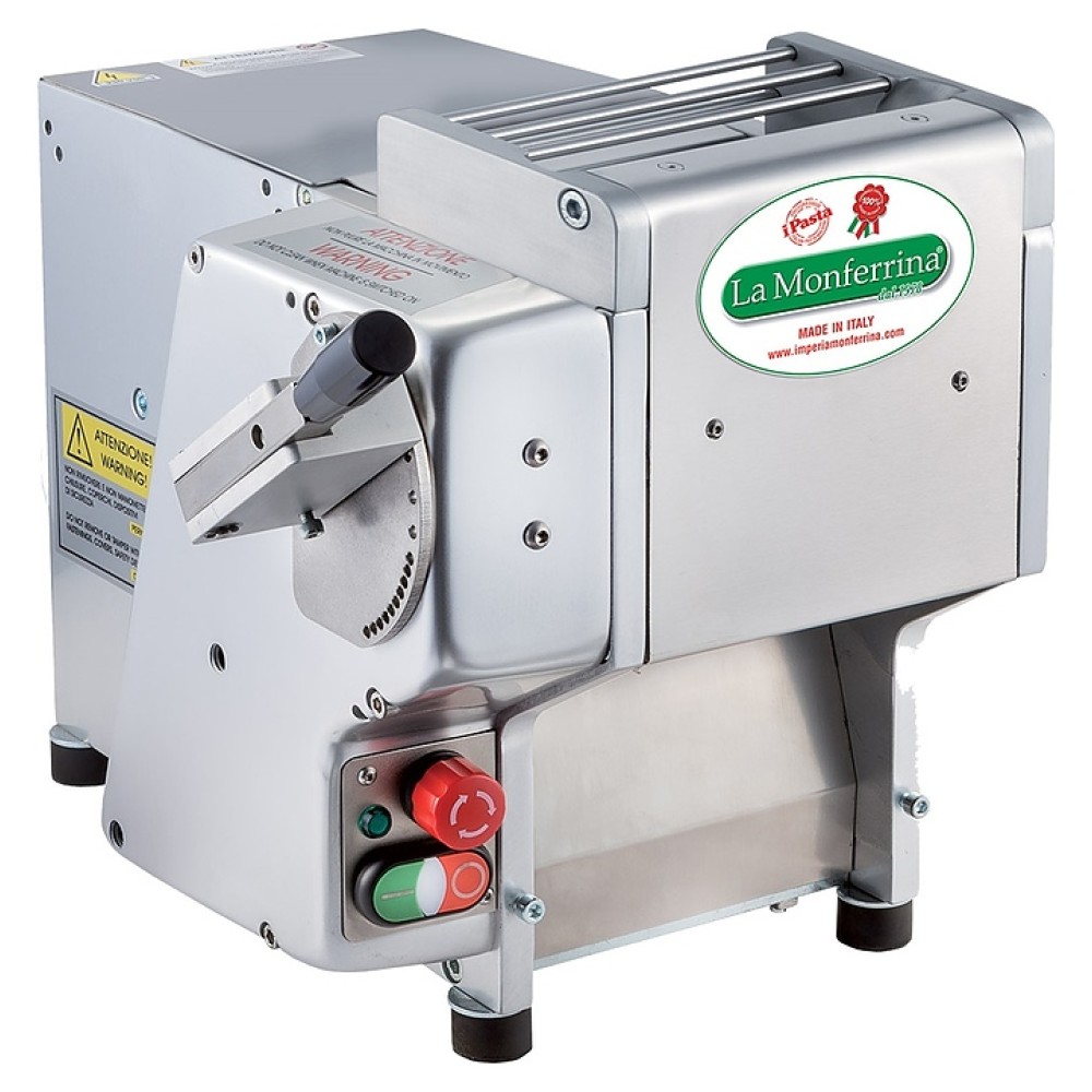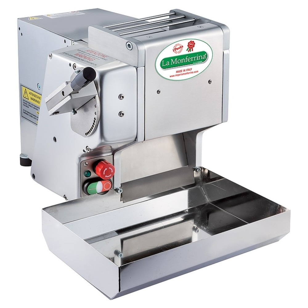 Тестораскаточная машина La Monferrina CILINDRO 170 используется на предприятиях пищевой промышленности, общественного питания и торговли для замеса и раскатки теста для изготовления равиоли (пельменей), чебуреков, лапши и других продуктов. Модель оснащена горизонтальным тестомесом и электромеханическим блоком управления. Корпус выполнен из анодированного алюминия, все соприкасающиеся с продуктом компоненты – из нержавеющей стали.