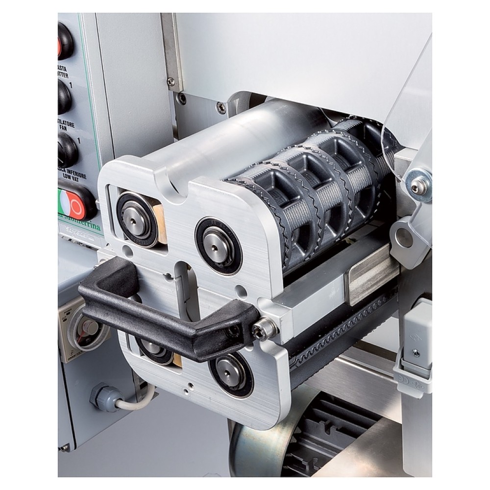 Тестораскаточная машина La Monferrina P2 PLEASURE используется на предприятиях пищевой промышленности, общественного питания и торговли для замеса и раскатки теста для изготовления равиоли (пельменей), чебуреков, лапши и других продуктов. Модель оснащена 2 горизонтальными тестомесами, ленточным конвейером и электромеханическим блоком управления.