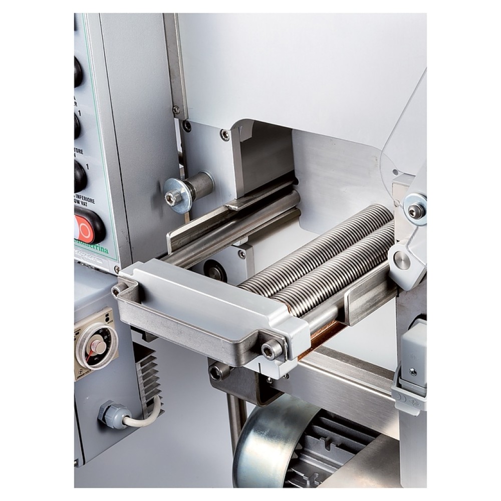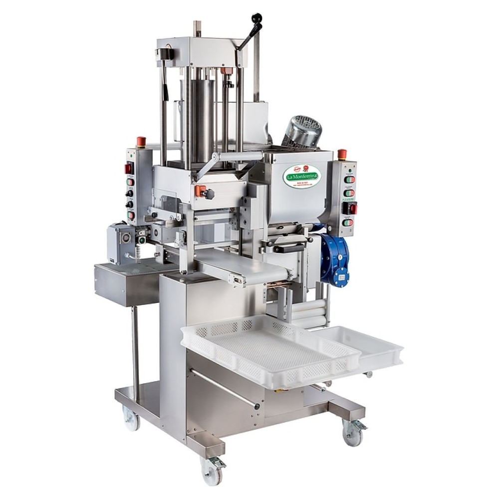 Тестораскаточная машина La Monferrina P2 PLEASURE используется на предприятиях пищевой промышленности, общественного питания и торговли для замеса и раскатки теста для изготовления равиоли (пельменей), чебуреков, лапши и других продуктов, а также для производства макаронных изделий. Модель оснащена 2 горизонтальными тестомесами, экструдером, ленточным конвейером и электромеханическим блоком управления.