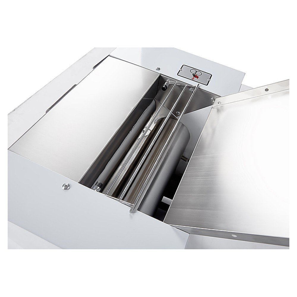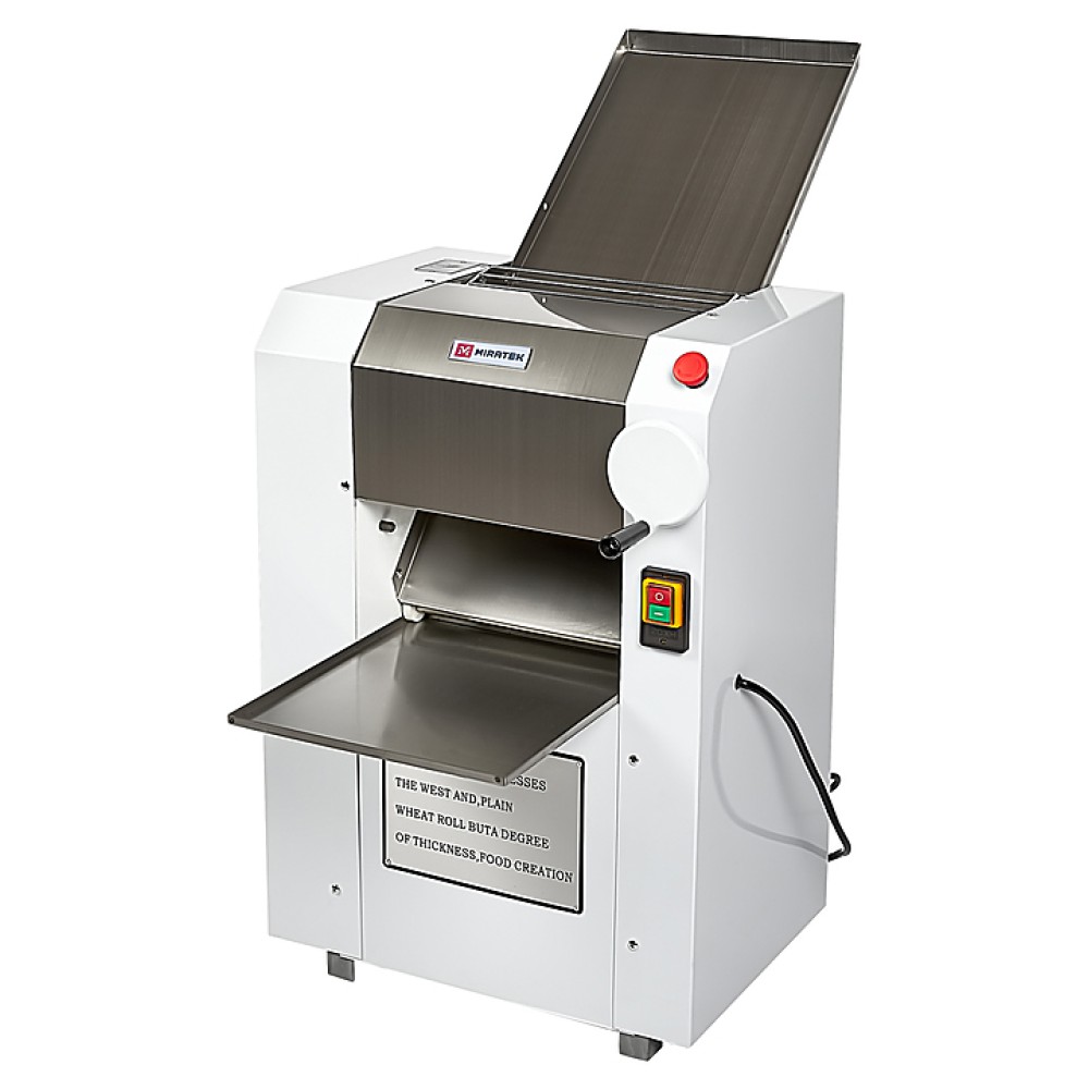 Тестораскаточная машина Miratek KR-350 используется на предприятиях общественного питания, пищевой промышленности и торговли для автоматизации процесса раскатки заготовок из крутого теста, используемого при приготовлении пельменей, вареников, хинкалей, чебуреков, лапши, лепешек и других пищевых изделий. Корпус выполнен из углеродистой стали и окрашен молотковой эмалью, валки и другие элементы, контактирующие с тестом - из нержавеющей стали AISI 304.