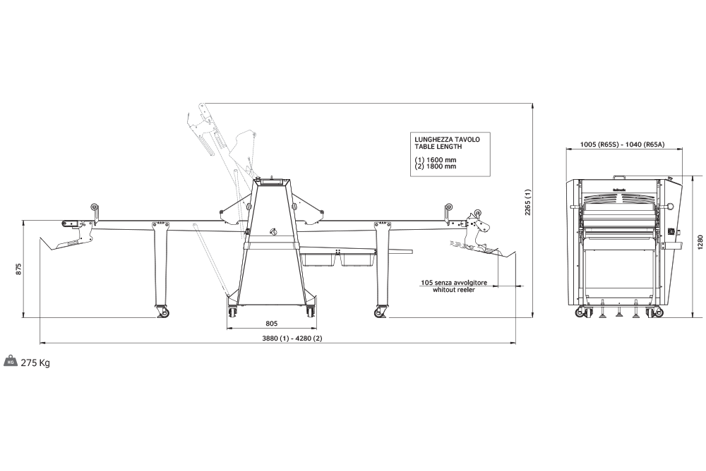 Напольная полуавтоматическая тестораскаточная машина Rollmatic R65S/18 используется в пекарнях, кондитерских, на других предприятиях пищевой промышленности, общественного питания и торговли для механизации раскатки теста с получением равномерно раскатанного пласта необходимой толщины, а также производства слоеного теста. Модель оснащена 2 съемными столами с ленточным конвейером, раскаточными валками, 2 защитными решетчатыми крышками и электромеханическим управлением. Корпус выполнен из стали с антикоррозийным покрытием, ящик для муки и крышки валков – из нержавеющей стали.