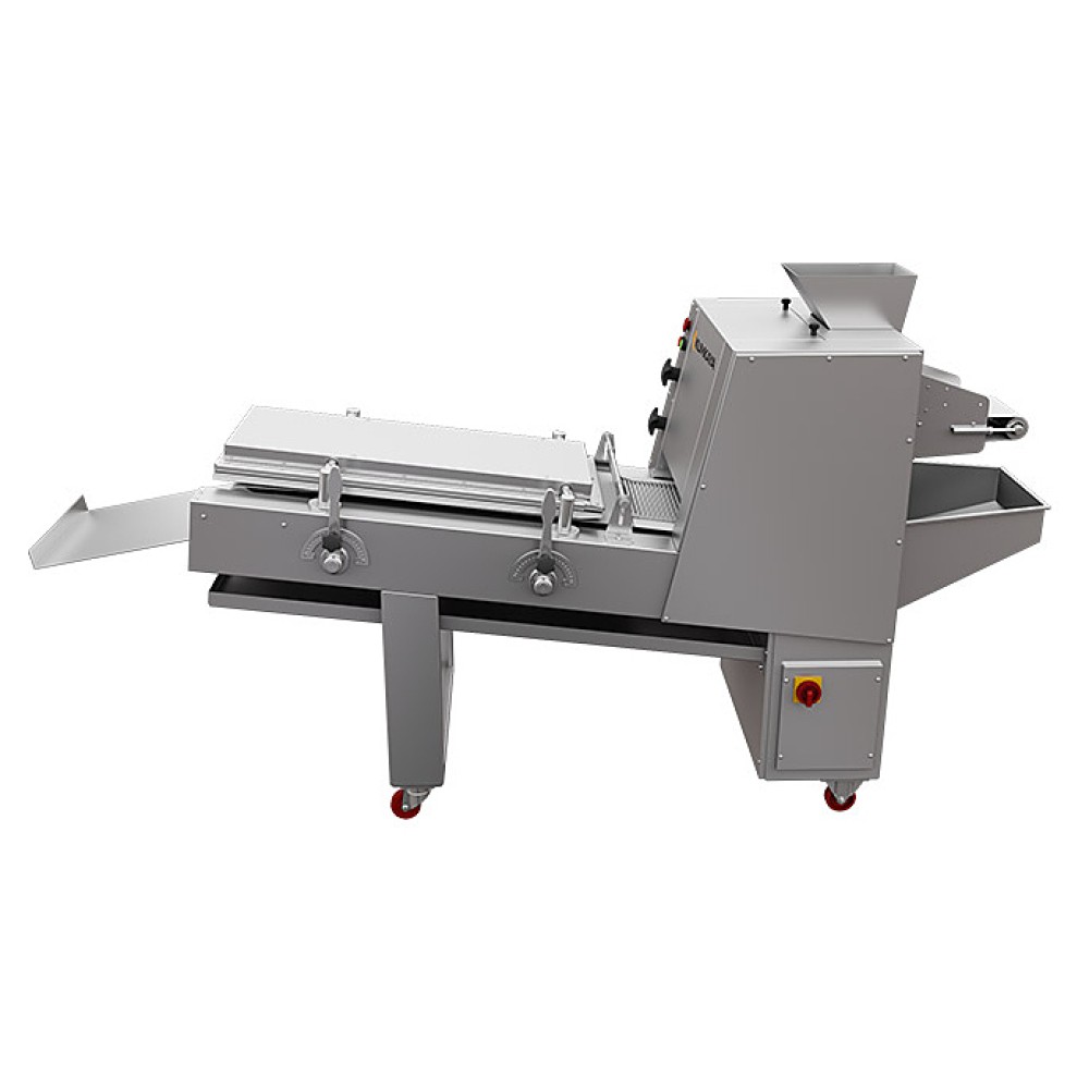 Тестозакаточная машина Kumkaya LM 3100 P предназначена для формирования тестовых заготовок в цилиндрическую форму на предприятиях общественного питания и торговли. Модель оснащена регулируемым мукоподсыпателем, 1 прижимной доской и колесами, облегчающими передвижение. Корпус и элементы, соприкасающиеся с продуктом выполнены из нержавеющей стали, цилиндры - с хромированным покрытием.