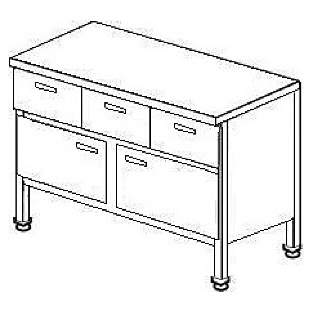| Материал каркасанерж. сталь | Материал столешницысталь | Оснащениеящики, полка |