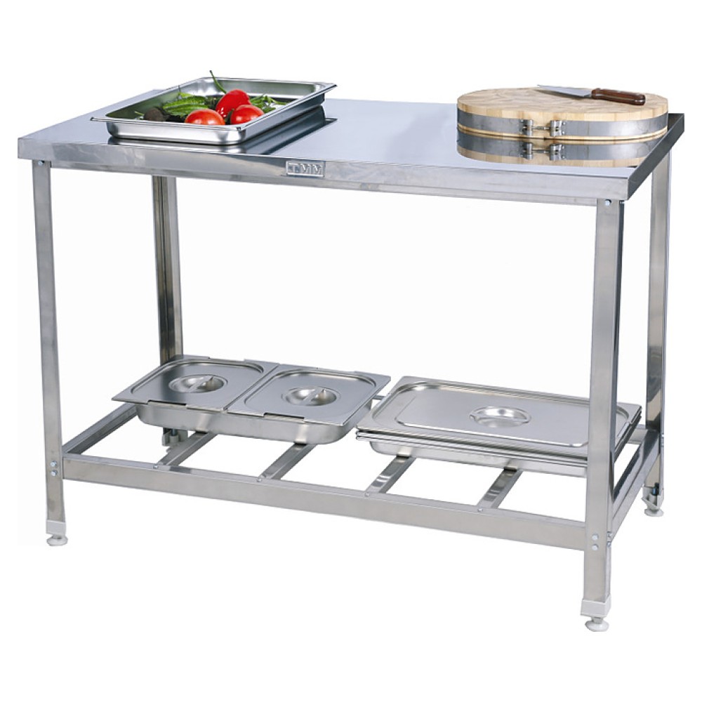 Производственный разделочный стол ТММ СРОР-1/950/600 предназначен для обработки ингредиентов для приготовления блюд, а также в качестве дополнительного места для установки кухонных приборов на предприятиях общественного питания и торговли. Столешница выполнена из нержавеющей стали AISI 430, полка-решетка - из оцинкованной стали, каркас - из оцинкованного уголка 40х40 мм.