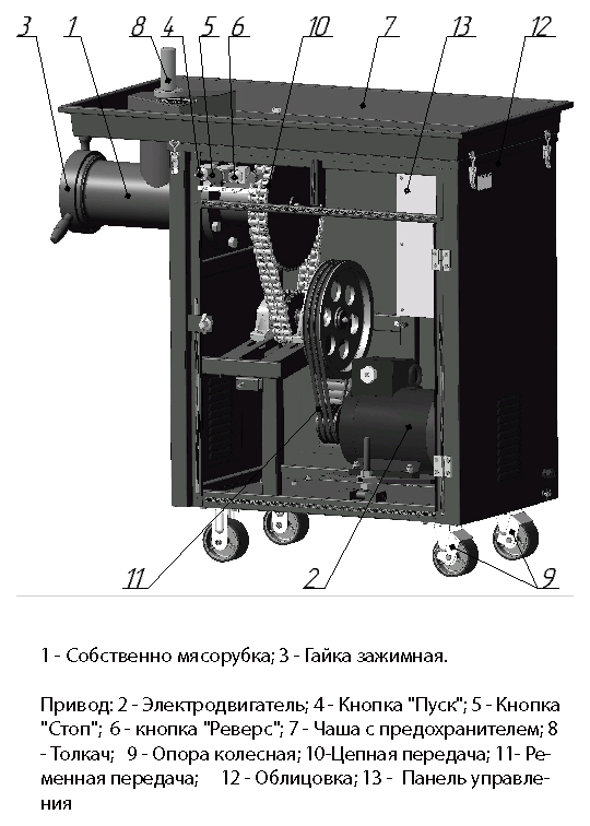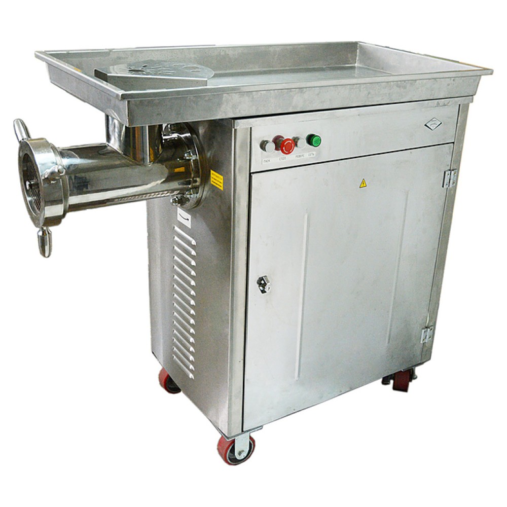 Мясорубка БЕЛТОРГМАШ МИМ-1000 используется на предприятиях общественного питания, торговли, а также в производственных цехах, деятельность которых связана с выпуском гастрономических товаров, для измельчения мяса и рыбы на фарш, повторного измельчения котлетной массы и набивки колбас. Модель оснащена приводом и функцией "Реверс", которая позволяет при наматывании жил освободить шнек без дополнительной разборки машин. Корпус, облицовка, горловина и шнек выполнены из нержавеющей стали.