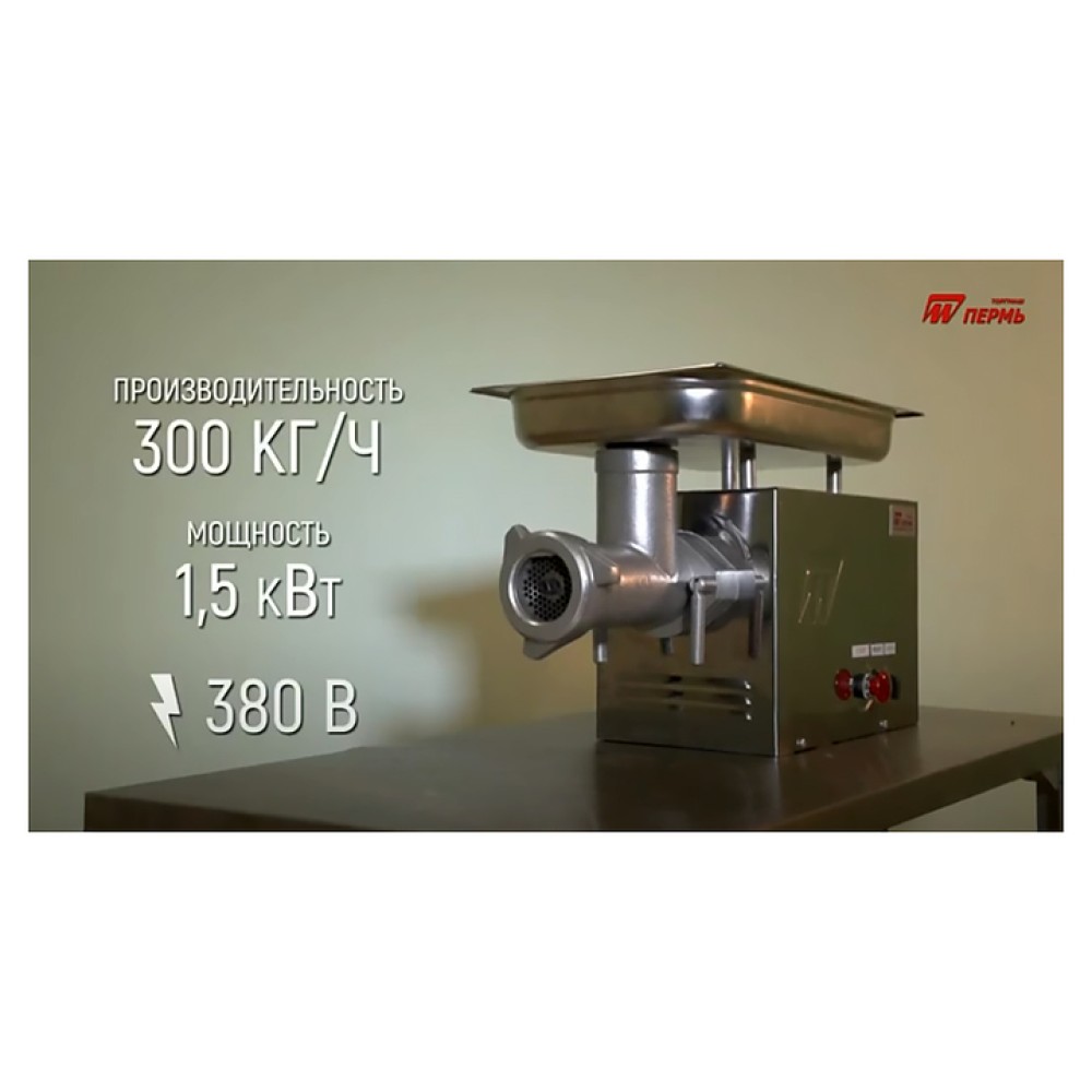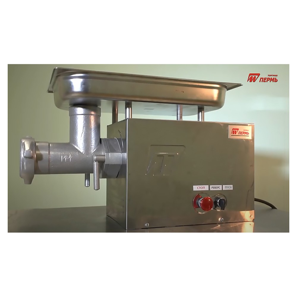 Мясорубка ТОРГМАШ М-300М используется на предприятиях общественного питания и торговли для измельчения в фарш мяса и рыбы, котлетной массы и набивки для колбас. Модель оснащена функцией «Реверс», которая позволяет при наматывании жил освободить шнек без дополнительной разборки. Облицовка корпуса привода выполнена из зеркальной нержавеющей стали.