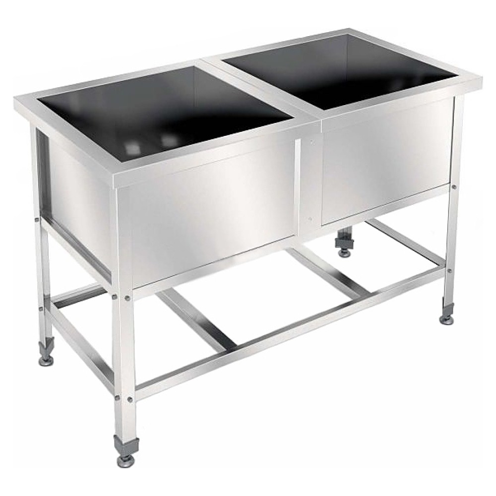 Ванна оснащена сварными мойками из нержавеющей стали. Ножки в виде уголка из высококачественной оцинкованной стали гарантируют устойчивость всей конструкции.