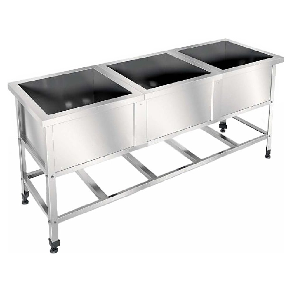 Ванна оснащена сварными мойками из нержавеющей стали. Ножки в виде уголка, выполненные из высококачественной оцинкованной стали, гарантируют устойчивость всей конструкции.