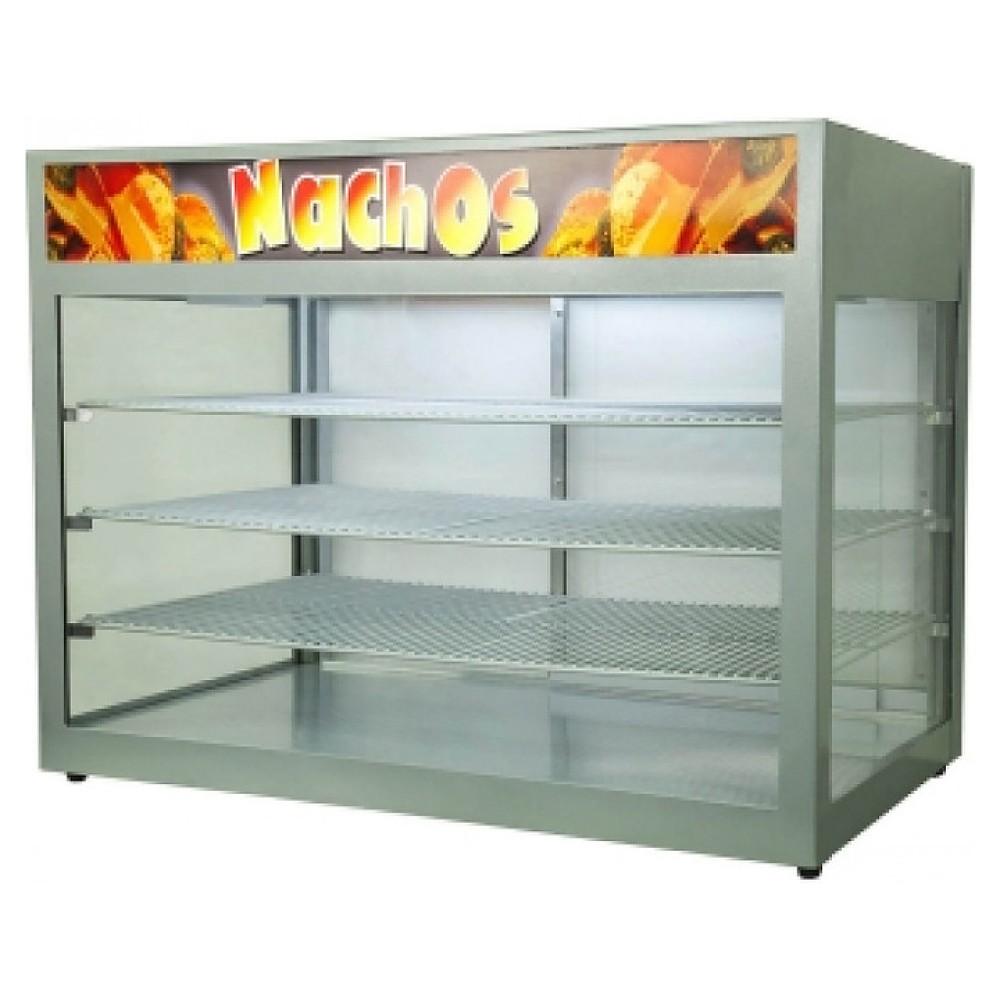 Тепловая витрина ТТМ VTN-880 предназначена для кратковременного хранения и демонстрации чипсов Nachos в розничных торговых точках, а также на предприятиях общественного питания. Модель оснащена конвективным нагревом внутреннего пространства с освещением, 3 полками-решетками и подсвеченными изнутри надписями NACHOS с двух сторон. Корпус выполнен из стали с пигментированным порошковым покрытием.
