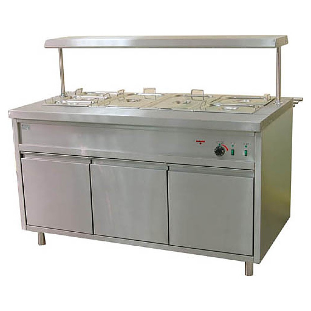 Мармит Тулаторгтехника МТ2-1 предназначен для демонстрации, подогрева и поддержания в теплом состоянии вторых блюд на предприятиях общественного питания и торговли. Модель оснащена полкой с подсветкой, нейтральным отсеком с 3 дверками и 4 регулируемыми по высоте опорами, позволяющими компенсировать неровности пола. Изделие выполнено из пищевой нержавеющей стали.