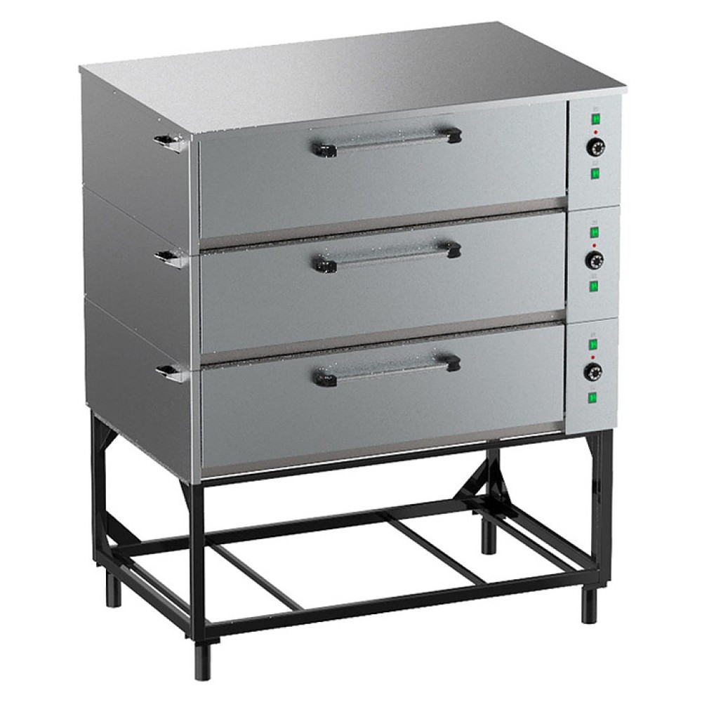 Жарочный шкаф Тулаторгтехника ЭШП-3с(у) предназначен для выпечки хлебобулочных и кондитерских изделий и приготовления различных блюд на предприятиях общественного питания и торговли. Каждая секция оснащена 2 нижними и 2 верхними нагревательными элементами. Рабочая, лицевые, боковые и задняя поверхности выполнены из оцинкованной стали, рама - из стальной профильной трубы, окрашенной порошковой краской.