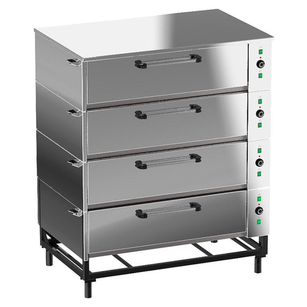 Жарочный шкаф Тулаторгтехника ЭШП-4с(у) предназначен для выпечки хлебобулочных и кондитерских изделий и приготовления различных блюд на предприятиях общественного питания и торговли. Каждая секция оснащена 2 нижними и 2 верхними нагревательными элементами. Рабочая, лицевые, боковые и задняя поверхности выполнены из нержавеющей стали, рама - из стальной профильной трубы, окрашенной порошковой краской.