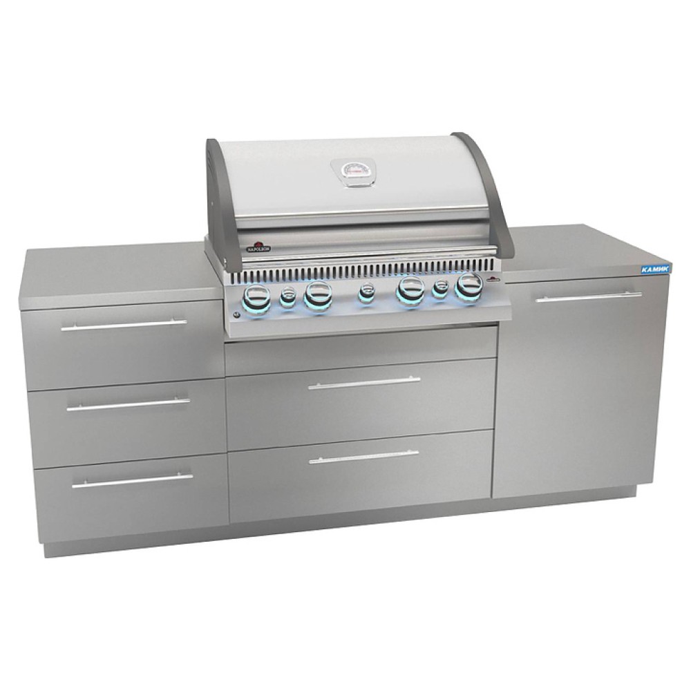 Модульная кухня КАМИК Альфа предназначена для приготовления большого ассортимента блюд на гриле на летних площадках предприятий общественного питания и торговли, гостиниц, а также во дворах, беседках или на верандах частных жилых или дачных домов. Модули выполнены из высококачественной нержавеющей стали марки AISI 304.