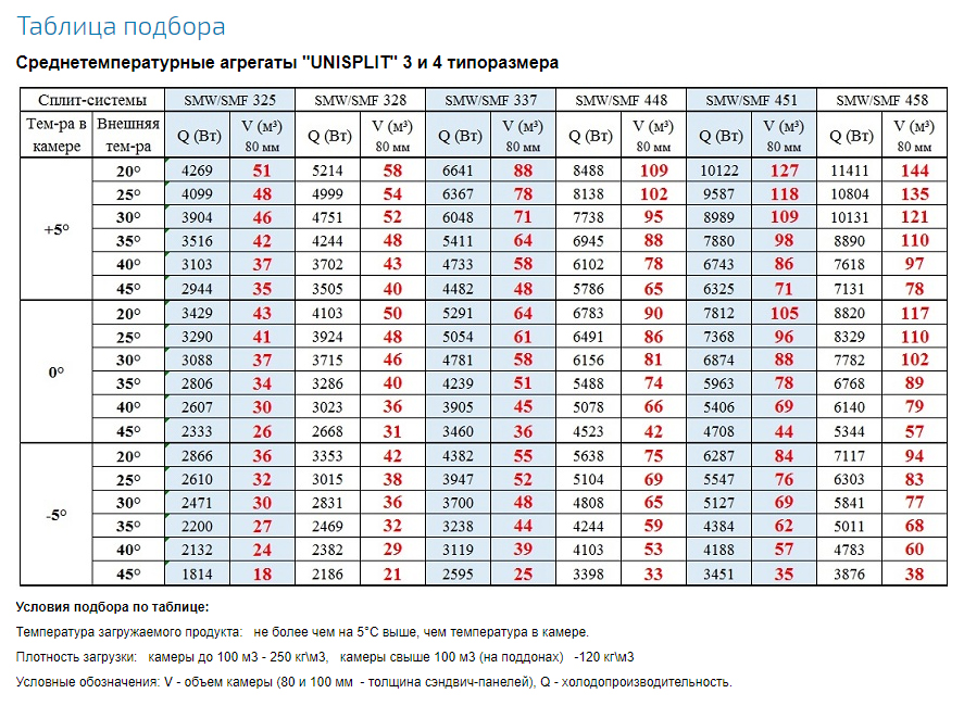 | Объем холодильной камеры | от 35 до 127 м³ |