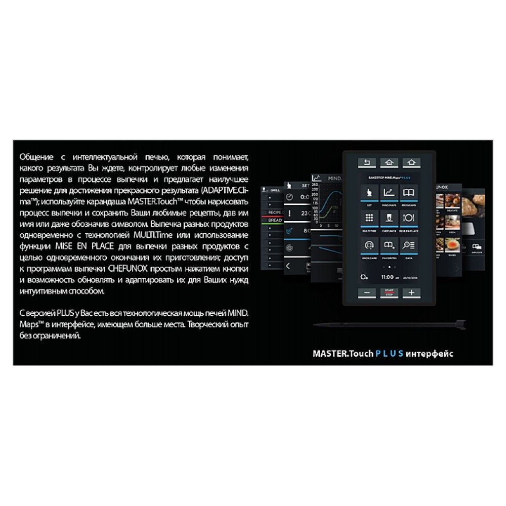 В комплект поставки входят многоточечный термощуп, тележка XEBTL-16EU, 4 пластиковых держателя, набор для подключения к водопроводной сети (шланг подачи воды, механический фильтр и невозвратный клапан 3/4) и набор «Starter Kit» (8 саморезов, гаечный ключ и наклейка). Листы для выпечки в комплект поставки не входят и приобретаются отдельно.