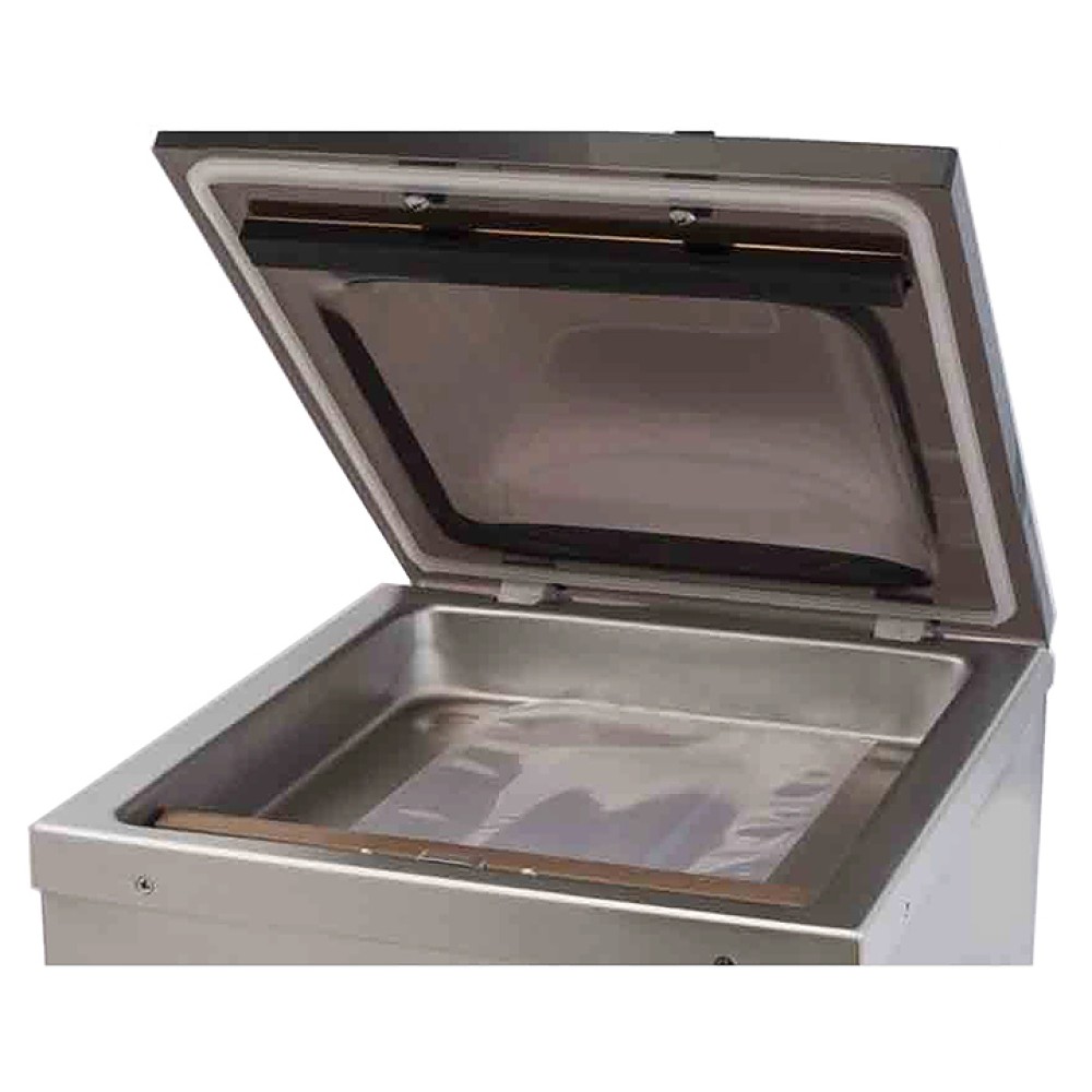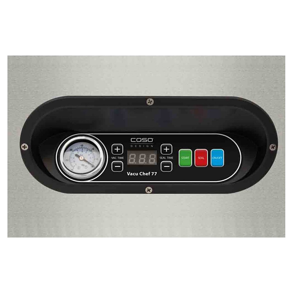 Однокамерный вакуумный упаковщик CASO VacuChef 77 используется на предприятиях пищевой промышленности, общественного питания и торговли для упаковки в вакуум полуфабрикатов и готовых блюд в пакетах для увеличения срока хранения. Модель оснащена сенсорной панелью управления с цифровым дисплеем, манометром, крышкой из закаленного стекла со смотровым окном и двухпоршневым насосом. Корпус и камера выполнены из нержавеющей стали.