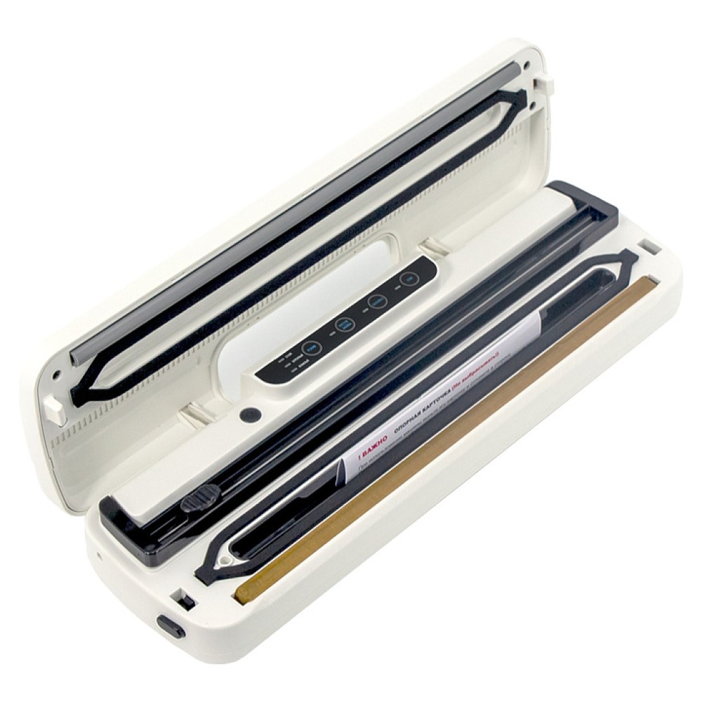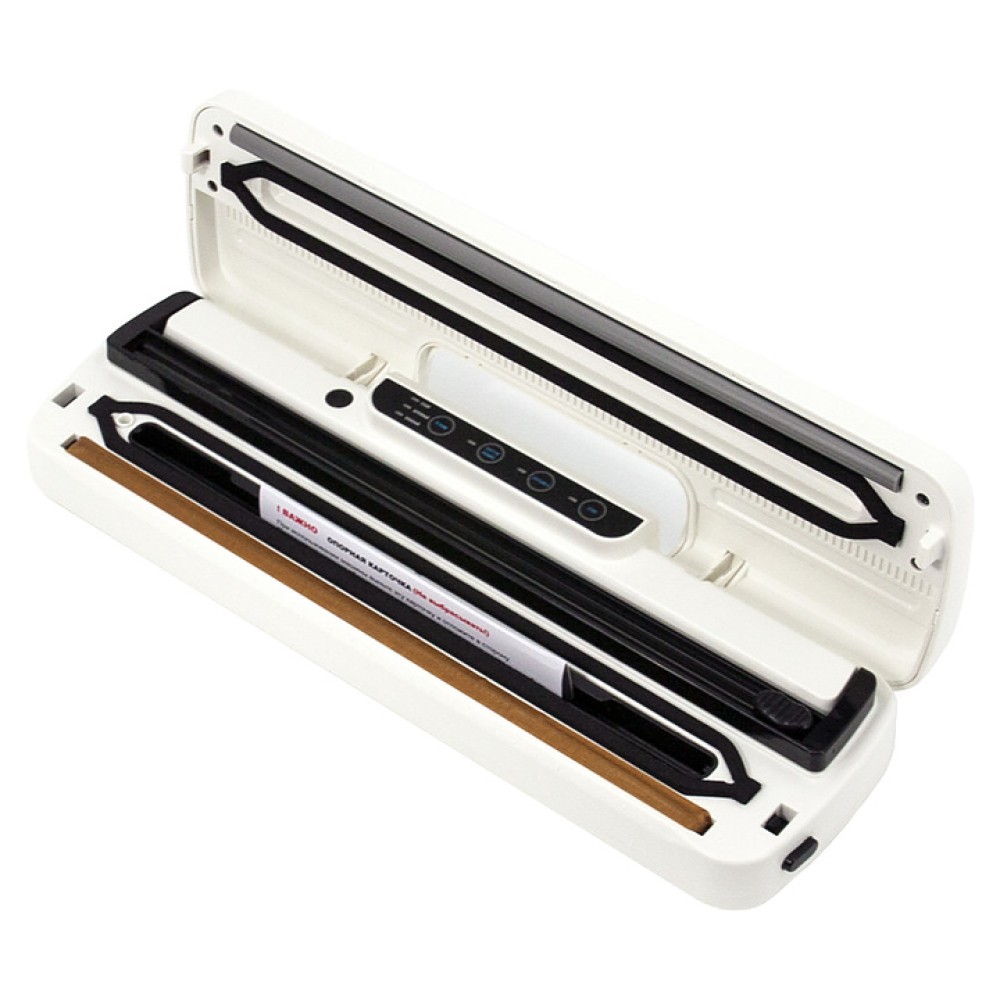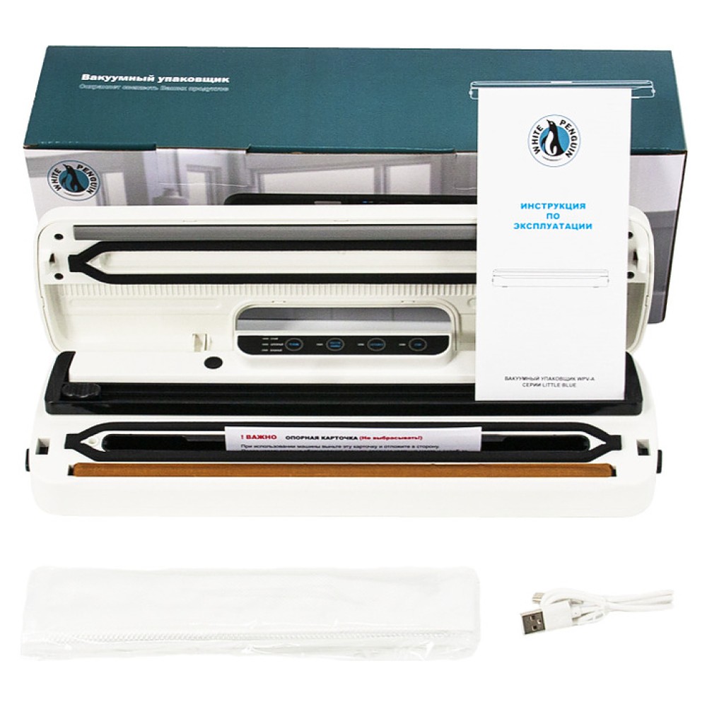 В комплект поставки входят USB-кабель для зарядки аккумулятора, набор вакуумных пакетов и инструкция на русском языке.