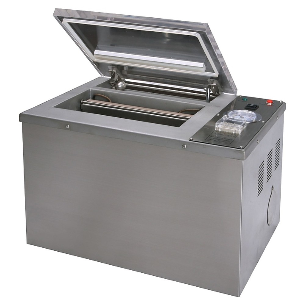 Настольный вакуумный упаковщик Hualian DZ-280/C используется на небольших предприятиях общественного питания и торговли, а также в домашних условиях для упаковки готовых блюд и пищевых продуктов в герметичную тару для сохранения свежести, предотвращения размножения микроорганизмов и смешивания запахов. Модель оснащена вакуумным насосом, объемной камерой с 1 продольно ориентированной запаечной планкой, расположенной сверху откидной крышкой с эластичными манжетой по периметру и прижимным уплотнением, панелью управления с функциональными кнопками и светодиодным цифровым дисплеем. Корпус и камера выполнены из нержавеющей стали, крышка – из высокопрочного органического стекла.