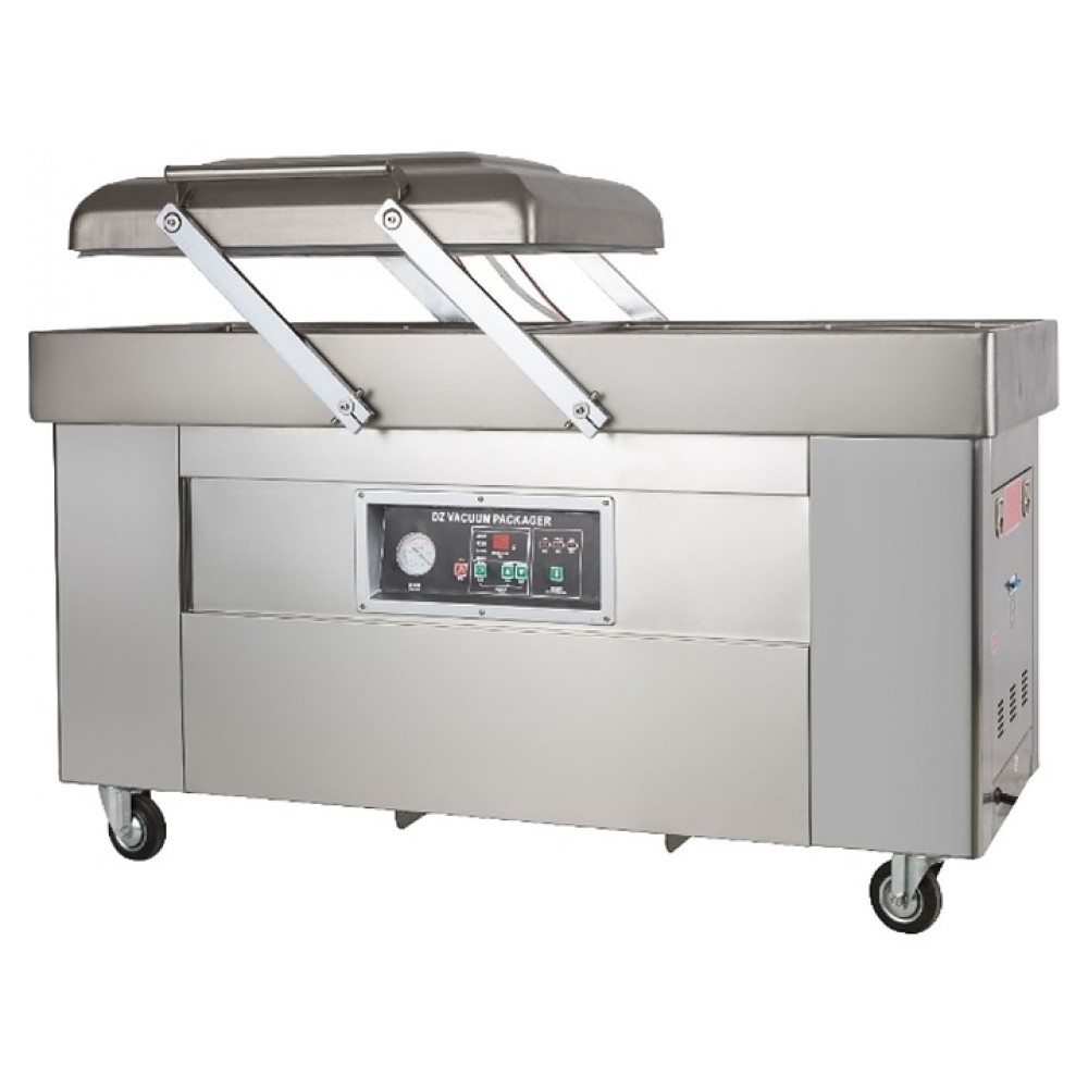 Напольный вакуумный упаковщик Hualian DZ-700/2SB SS используется на предприятиях пищевой промышленности, общественного питания и торговли для упаковки готовых блюд и различных пищевых продуктов в герметичную тару для сохранения свежести, предотвращения размножения микроорганизмов и смешивания запахов. Модель оснащена 2 камерами, 2 сварочными пластинами в каждой камере, расположенной сверху крышкой и панелью управления с мембранной клавиатурой и светодиодным цифровым дисплеем. Корпус и крышка выполнены из высококачественной нержавеющей стали.