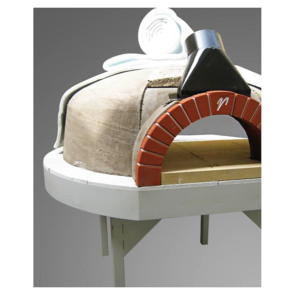 В комплект поставки входят элементы купола и пода, декоративная дверная арка, дымоход, заслонка, огнеупорный стенд, теплоизоляционный материал и шпатлевка Valplast.