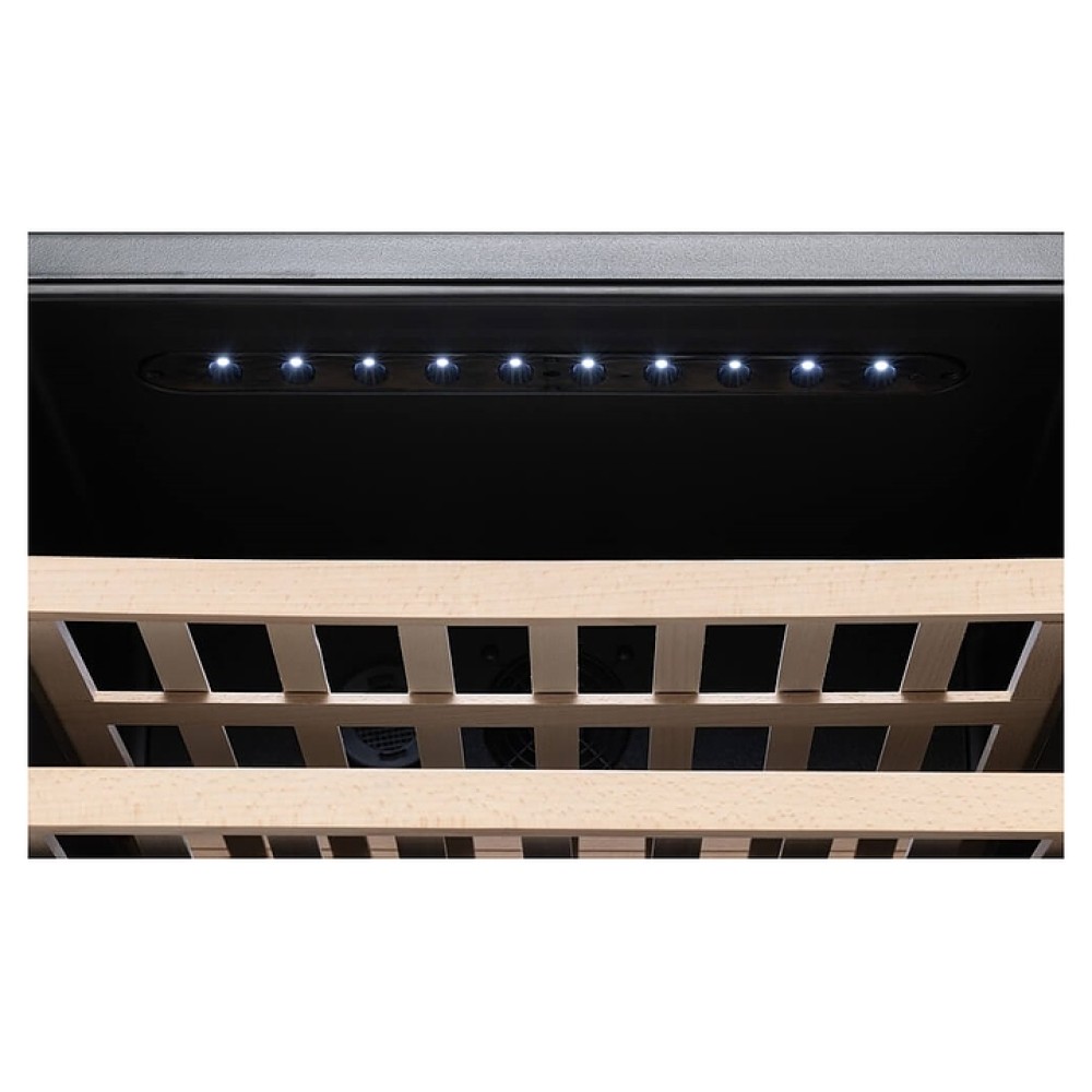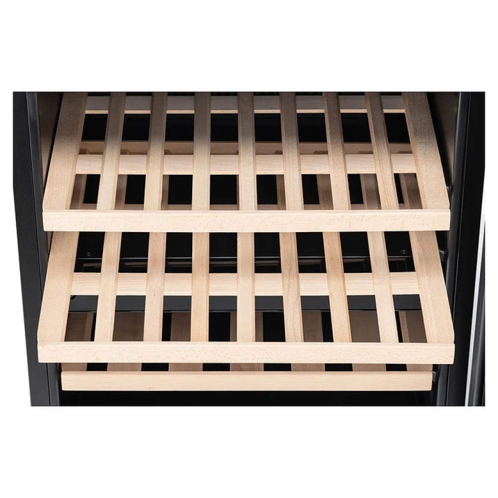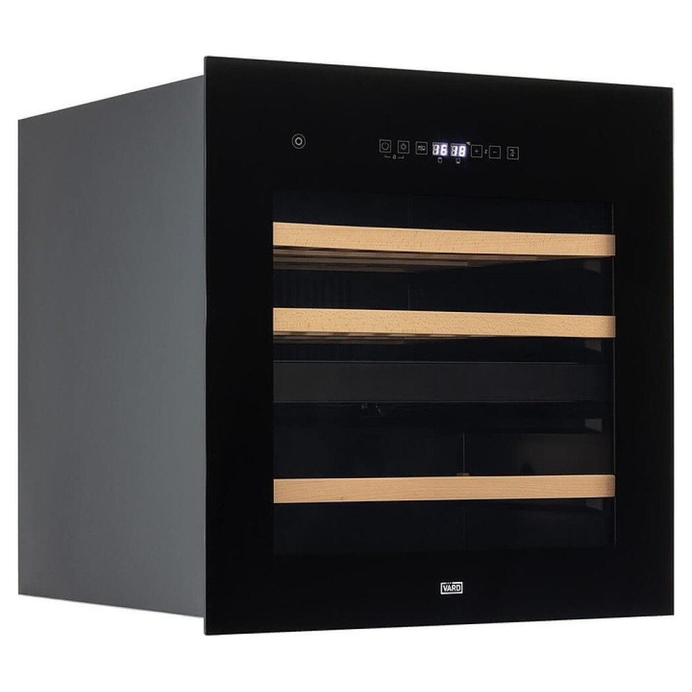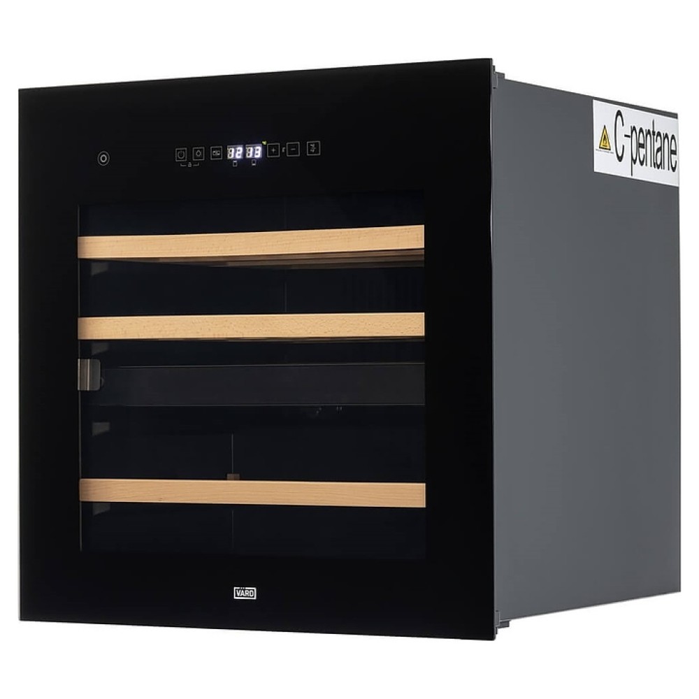 Винный шкаф VARD WCI6DS предназначен для хранения при оптимальных условиях и демонстрации бутилированного вина различных сортов в барах, ресторанах, специализированных магазинах, складских помещениях, гостиницах, а также домашних условиях. Модель оснащена холодильной камерой с 2 независимыми температурными зонами, правосторонней распашной дверью, обзорным остеклением, кабелем питания с вилкой, расположенной в верхней части фронта управления с сенсорными клавишами и светодиодным цифровым дисплеем с белой подсветкой индикации. Корпус выполнен из металла с антикоррозийным покрытием черного цвета, фронт двери – из стекла, полки – из массива буковой древесины.