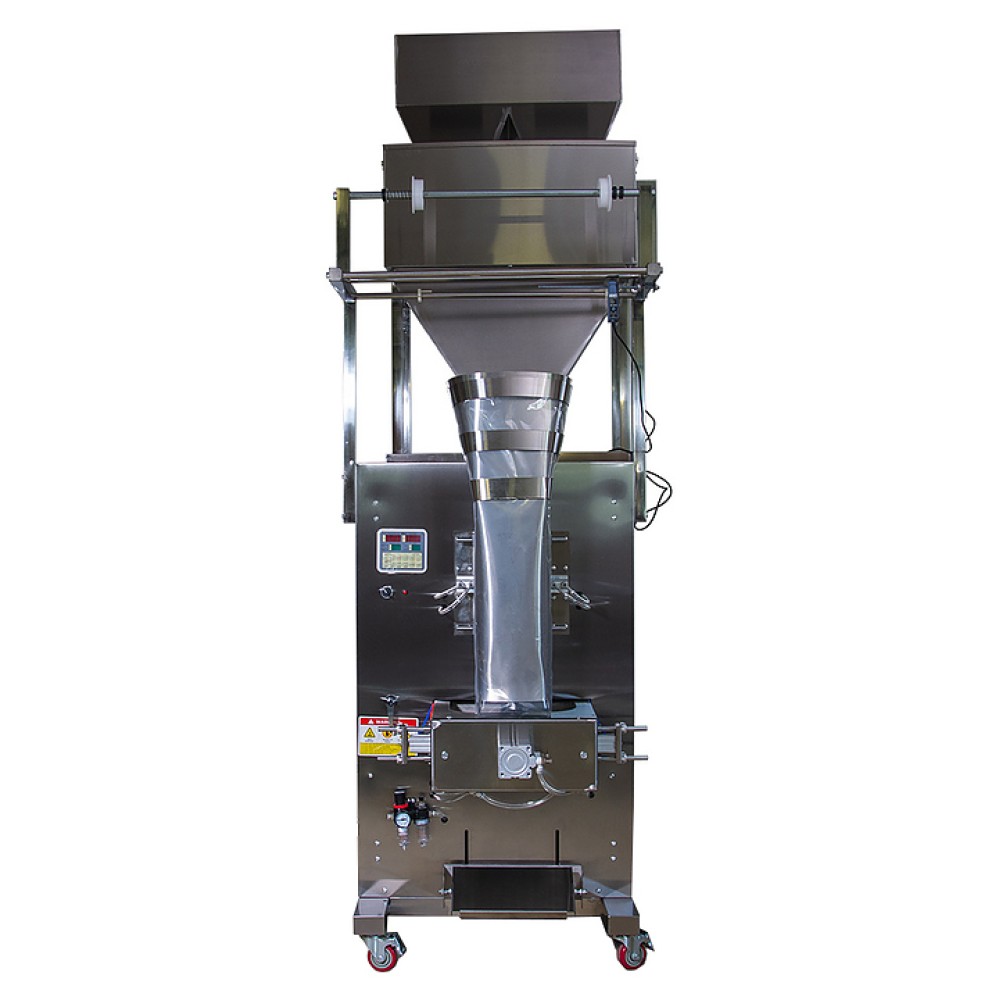 Вертикальный упаковочный автомат МАГИКОН AVW2BRP3000II используется на производственных площадках, предприятиях пищевой промышленности, общественного питания и торговли для фасовки и упаковки сыпучих пищевых и не пищевых продуктов: чая крупно и мелко листового, сухих приправ, различных видов крупп, семян, удобрений с формированием пакета "подушка" и пакета с подбоем. Модель состоит из упаковочной машины с пневматическим запаечным приводом и двухлинейного весового дозатора, размещенным на упаковщике. Корпус дозатора и упаковочной машины изготовлены из нержавеющей стали.