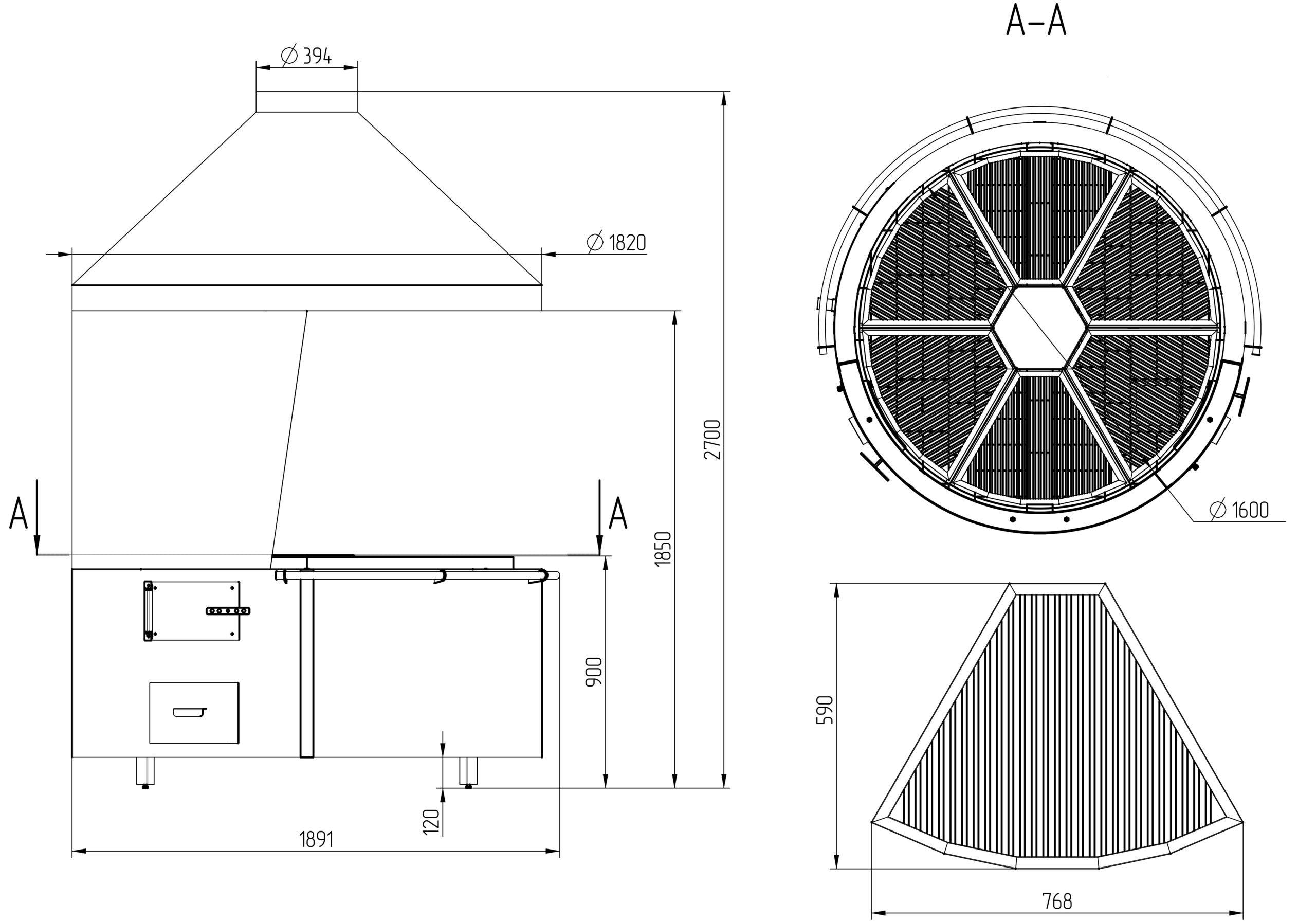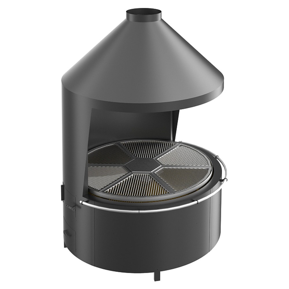 Печь-мангал Vesta Рёберная предназначена для приготовления ребер, стейков, овощей и других продуктов на открытом огне в закрытых помещениях. Модель оснащена вращающейся жарочной решеткой, состоящей из 6 сегментов, вытяжным зонтом со стенкой и регулируемыми ножками. Жарочные решетки выполнены из нержавеющей стали.