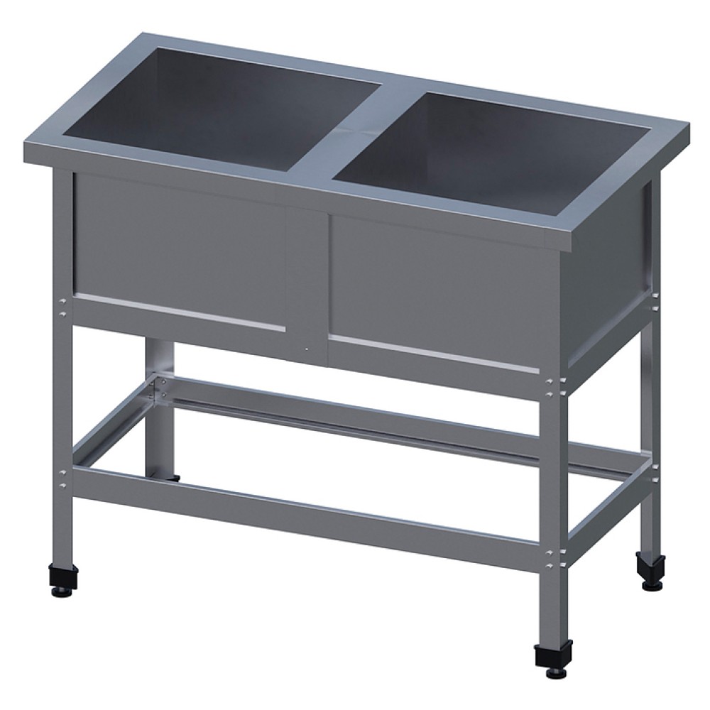 Ванна VIATTO ВСМ-2/530-ЮТ предназначена для мытья посуды, кухонного инвентаря и гастрономических продуктов на предприятиях пищевой промышленности и общественного питания. Емкость выполнена из нержавеющей стали AISI 430 толщиной 0,8 мм, каркас - из оцинкованной стали толщиной 1,2 мм. Ножки регулируются по высоте.