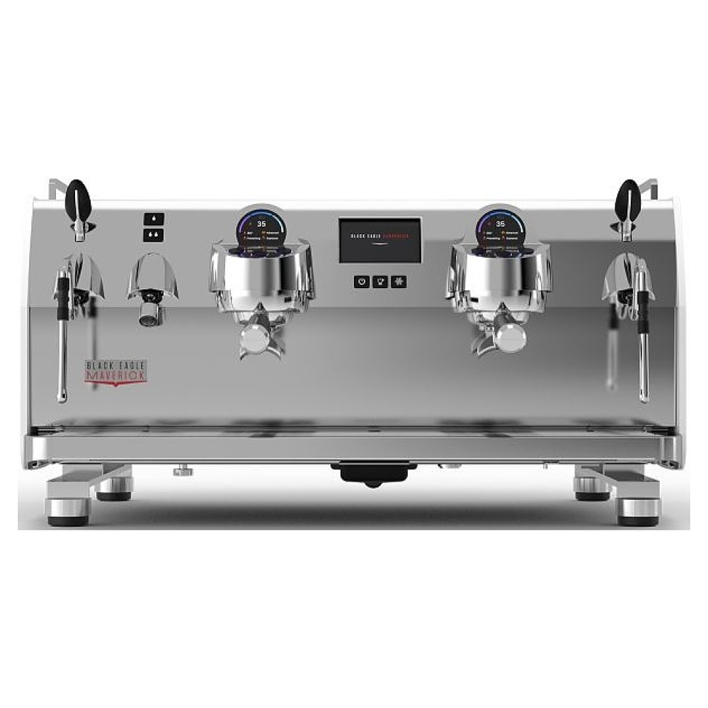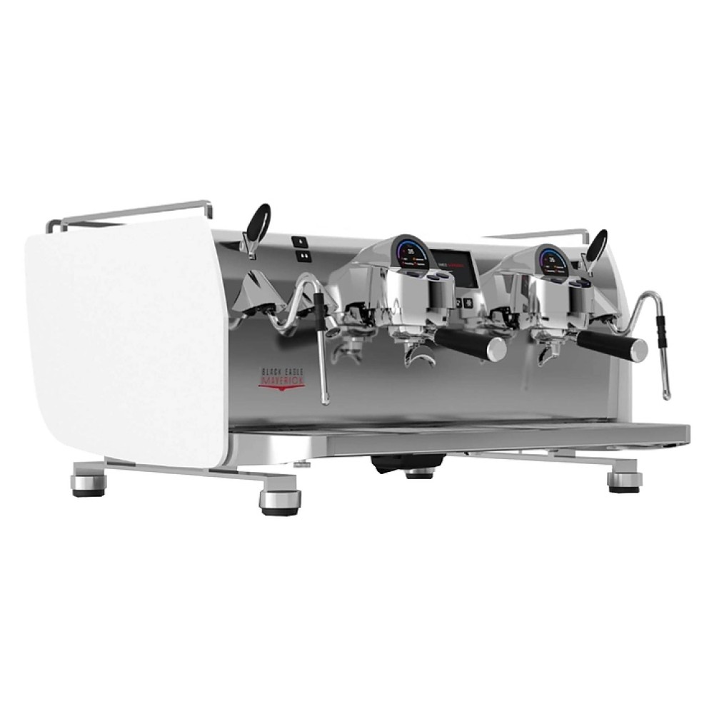 Автоматическая кофемашина Victoria Arduino Maverick Gravimetric Volumetric T3 GR2 220V используется в кофейнях, барах, ресторанах для приготовления эспрессо, капучино и различных кофейных напитков на их основе. Модель оснащена 2 кофейными группами, 2 поворотными кранами подачи пара, краном подачи горячей воды, основной панелью управления с 3 функциональными клавишами, многофункциональным жидкокристаллическим сенсорным дисплеем (touchscreen), а также персональными панелями для каждой группы с 3 функциональными клавишами и жидкокристаллическим дисплеем. Фронтальная и задняя панели корпуса, направляющие по внешнему периметру верхней панели, бойлеры, краны, холдер, логотип на задней панели выполнены из высококачественной нержавеющей стали, боковые панели корпуса – из алюминия, задняя и боковые панели имеют покрытие цвета сияющий белый.