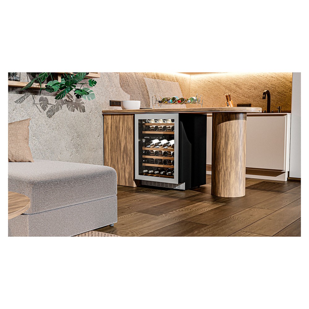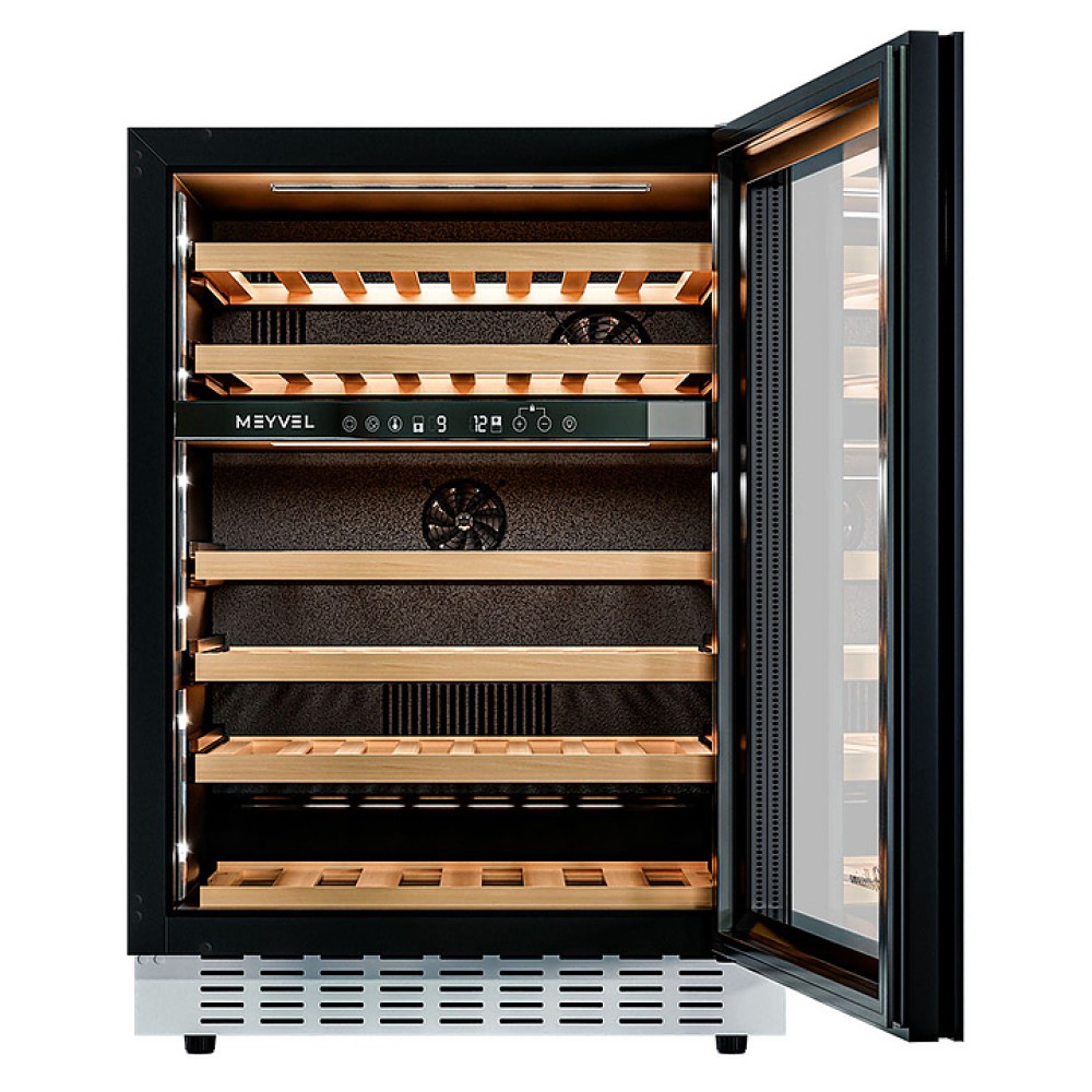 Винный шкаф MEYVEL MV46NH-KWT2 предназначен для демонстрации, хранения и создания оптимальных условий для сохранения всех вкусовых свойств вина в бутылках на предприятиях общественного питания, торговли, в барах, ресторанах, специализированных магазинах, частных домах или квартирах. Модель оснащена сенсорной панелью управления, демонстрационным освещением, утопленной ручкой и регулируемыми ножками. Угольный фильтр очищает воздух внутри шкафа от посторонних запахов. Корпус выполнен из стали, дверь - из тройного стекла с УФ-фильтром, полки - из массива бука.
