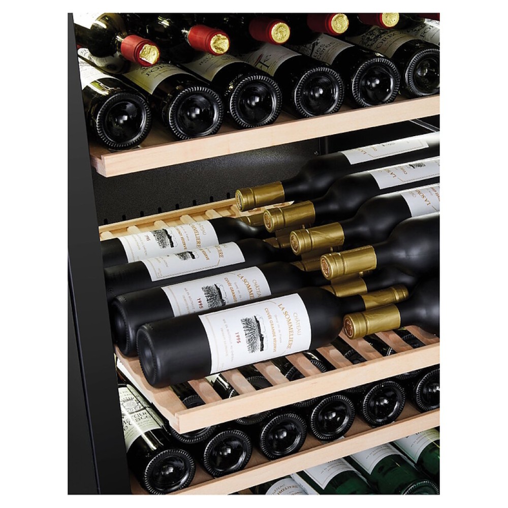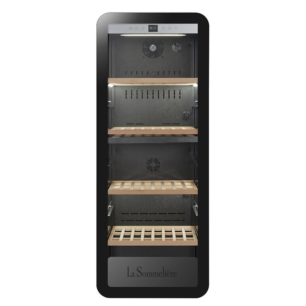 Винный шкаф La Sommeliere APOGEE145DZ предназначен для кратковременного хранения бутилированного вина в ресторанах, специализированных магазинах, подсобных складских помещениях, в частных домах или квартирах. Модель оснащена сенсорным цифровым белым дисплеем с электронным термометром, подсветкой, 2 презентационными полками «head-to-tail», 2 горизонтальными полками, дверцей с замком, 2 регулируемыми полками и 2 колесами. Дверь выполнена из тройного стеклопакета с защитой от УФ-излучений, полки - из бука.