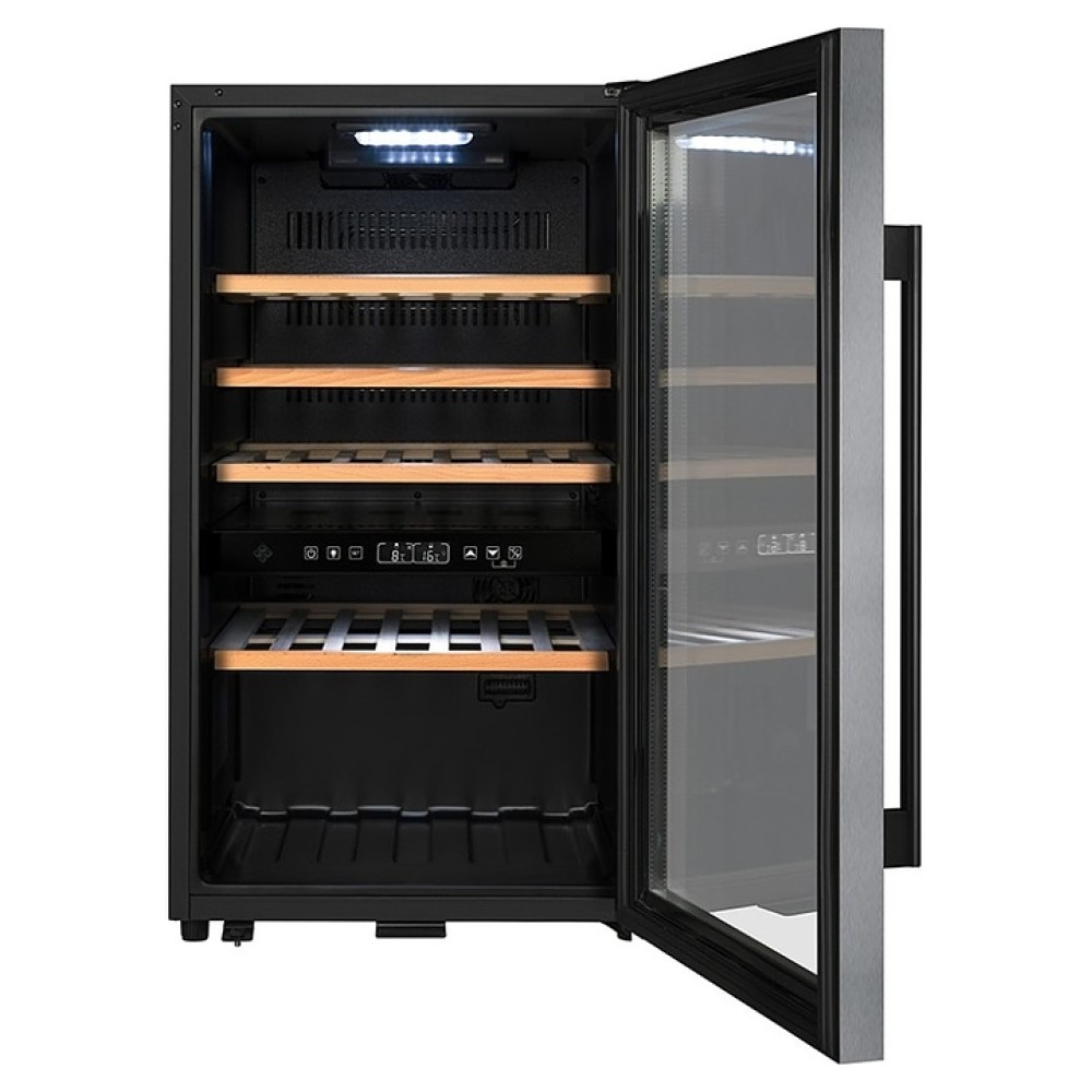 Винный шкаф La Sommeliere LSBU18X2 создает оптимальные условия для сохранения всех вкусовых свойств разливного вина в ресторанах, специализированных магазинах, подсобных складских помещениях, в частных домах или квартирах. Модель оснащена электронным термостатом с сенсорным цифровым дисплеем. Корпус выполнен из металла, полки - из бука, дверь - из стекла с УФ защитой.