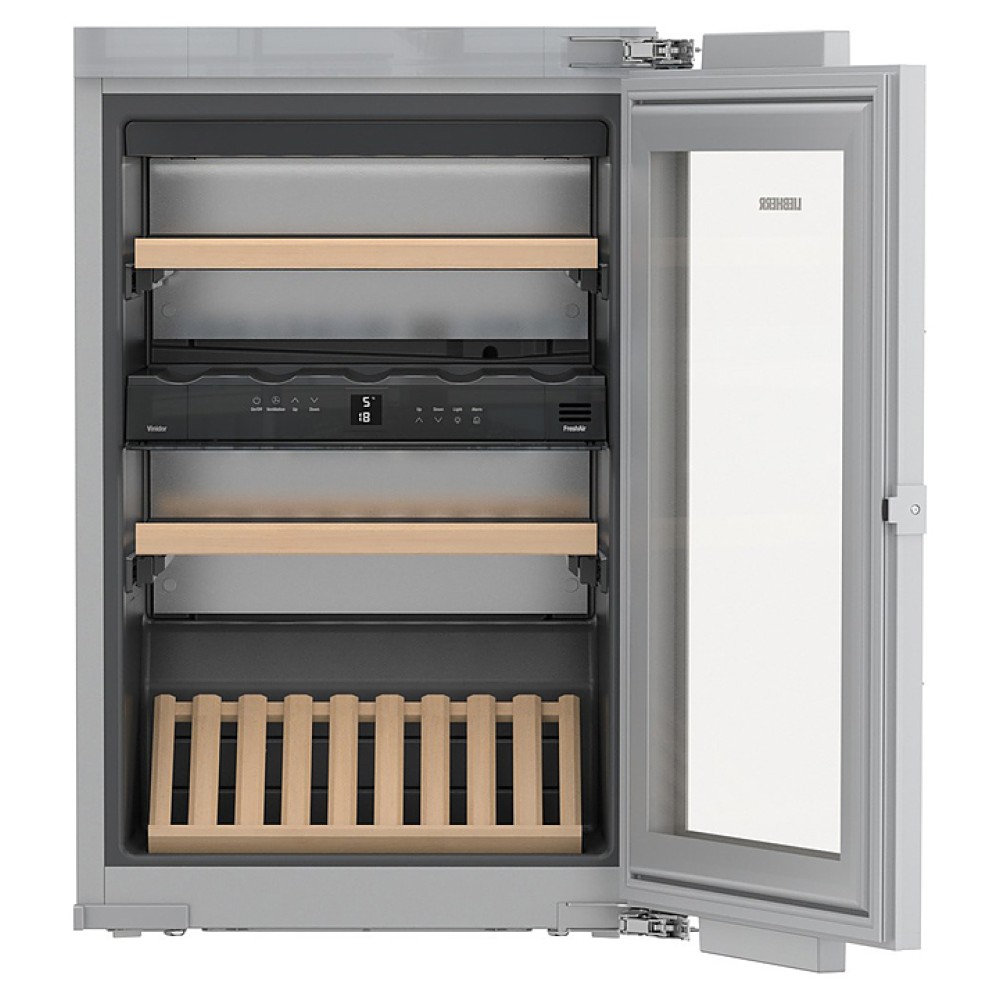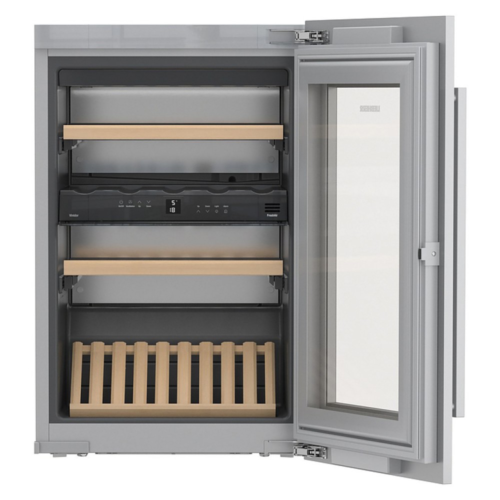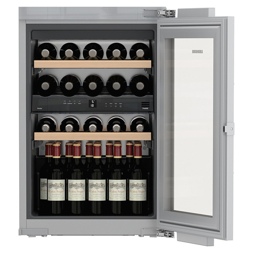 Винный шкаф Liebherr EWTdf 1653 серии Vinidor предназначен для охлаждения и длительного хранения разливного вина в частных домах, квартирах, отелях и офисах. Модель оснащена сенсорной панелью управления с ЖК-дисплеем MagicEye с цифровой индикацией температуры. Шкаф обладает достаточной универсальностью, при этом температура в каждой из 2-х температурных зон устанавливается независимо от остальных зон, тем самым позволяя одновременно хранить красные и белые вина.