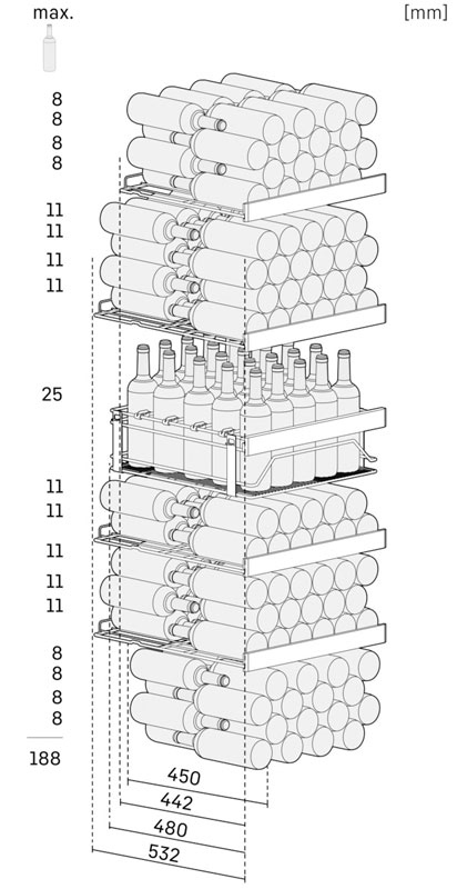 | Вес (без упаковки)102 кг | Вес(С упаковкой)109 кг | Вместимость188 бут. |