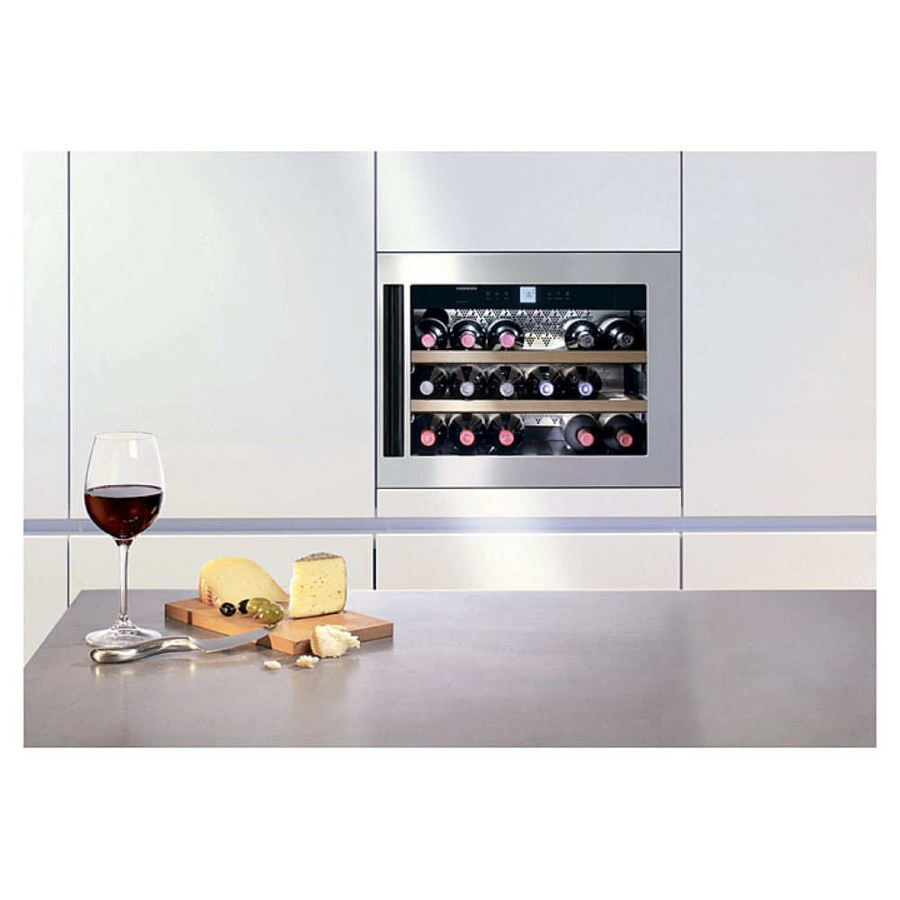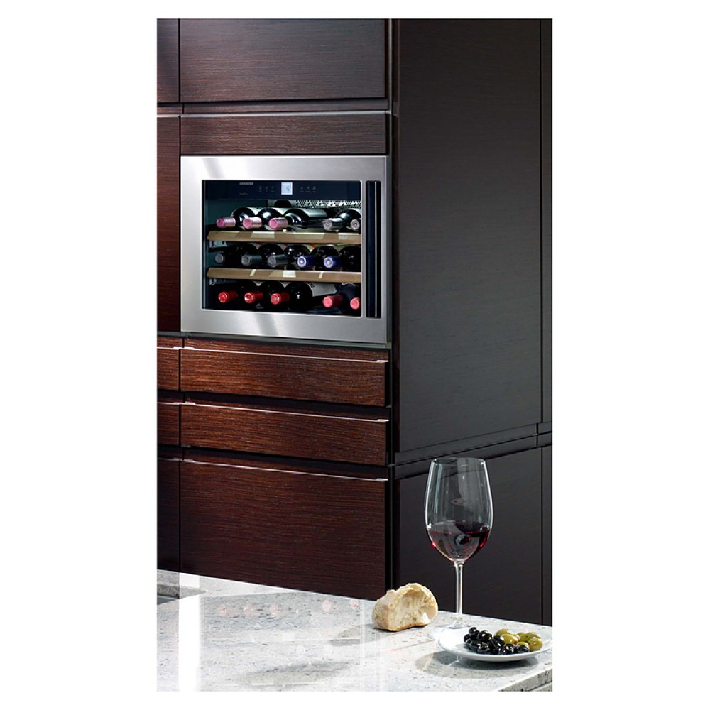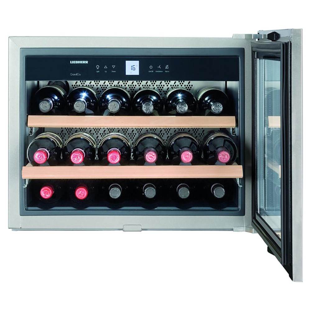 Винный шкаф Liebherr WKEes 553 серии GrandCru предназначен для охлаждения и длительного хранения разливного вина в частных домах, квартирах, отелях и офисах. Модель оснащена сенсорным управлением, жидкокристаллическим дисплеем и цифровой индикацией температуры. Внутренняя прокладка выполнена из серого полистирола, корпус - из нержавеющей стали, дверь - из стекла с с рамой из нержавеющей стали, полки - из дерева акации.