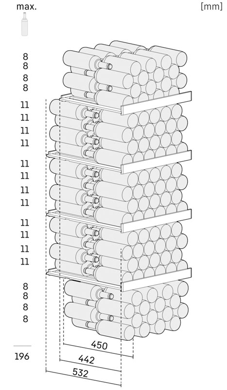 | Вес (без упаковки)84 кг | Вес(С упаковкой)90 кг | Вместимость196 бут. |